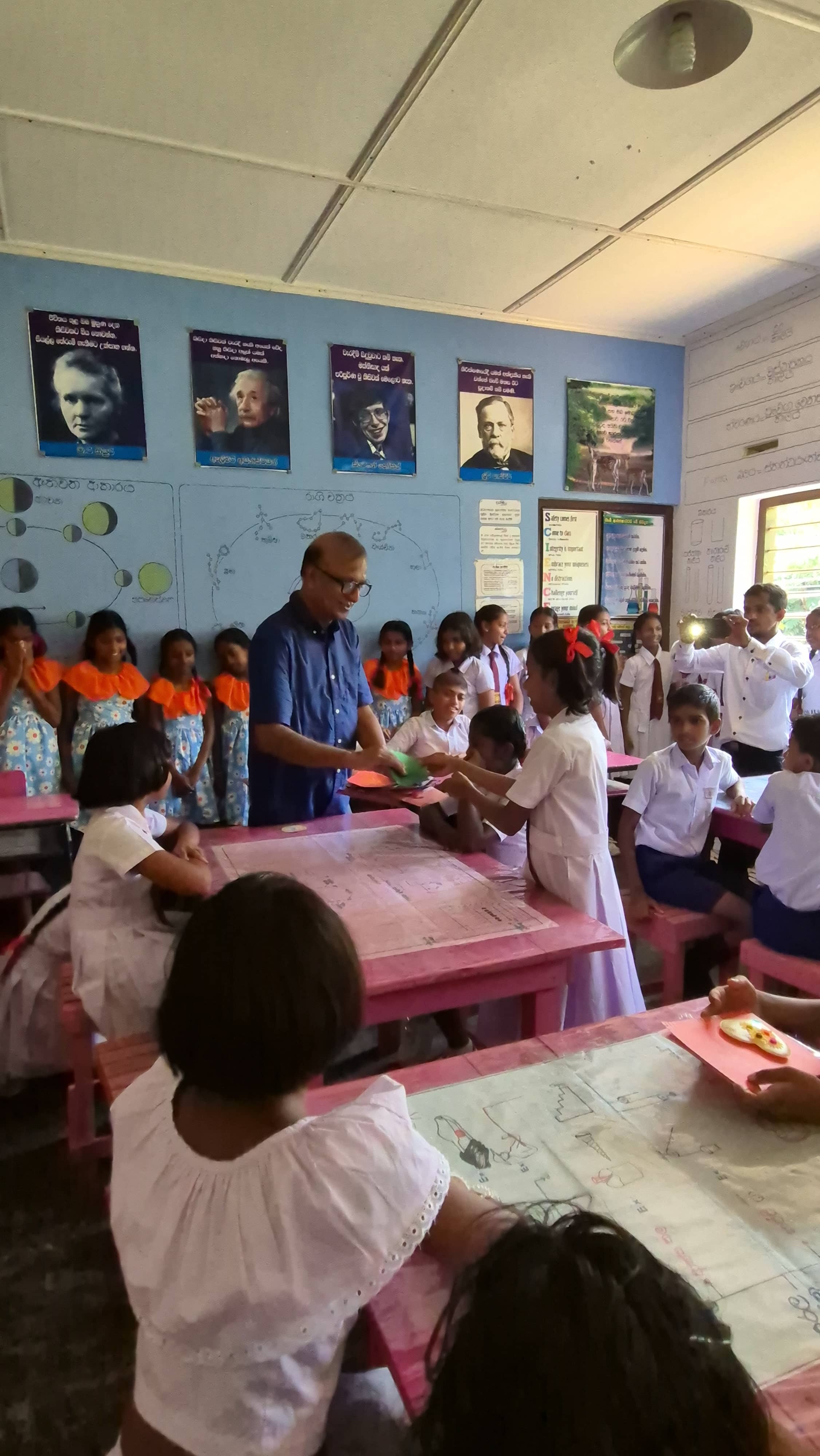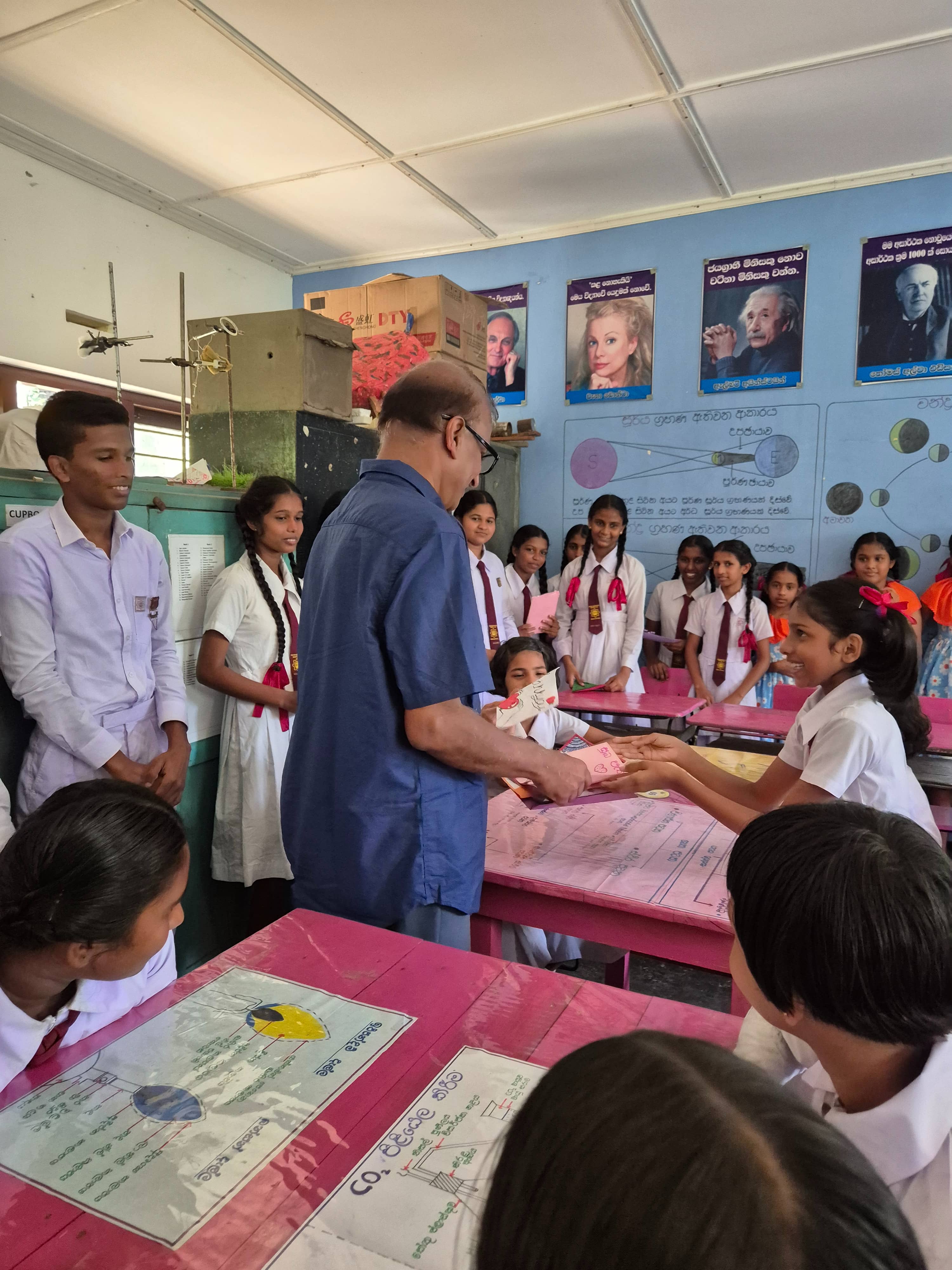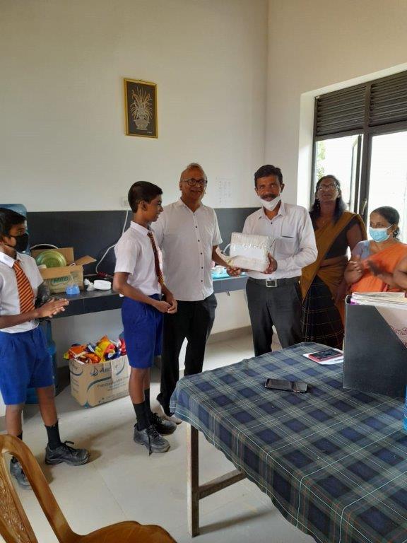 At a small ceremony held at the science lab,school Principal Ajith said that Devsiri Hewavidana, who donated over Rs. 2.5 million in equipment and buildings to schools, and provided scholarships and other assistance to school children, was a great asset to the entire Kamburupitiya.