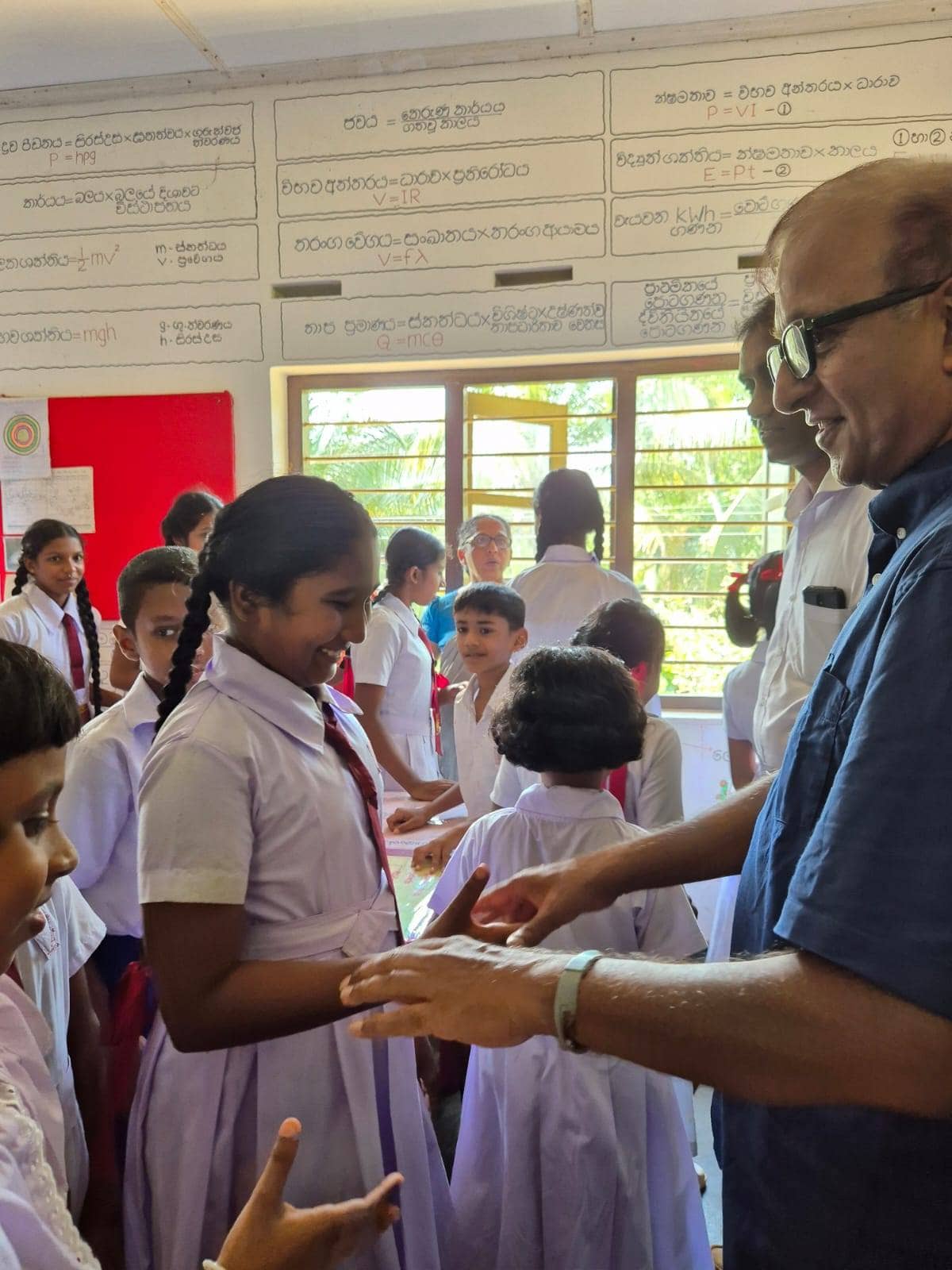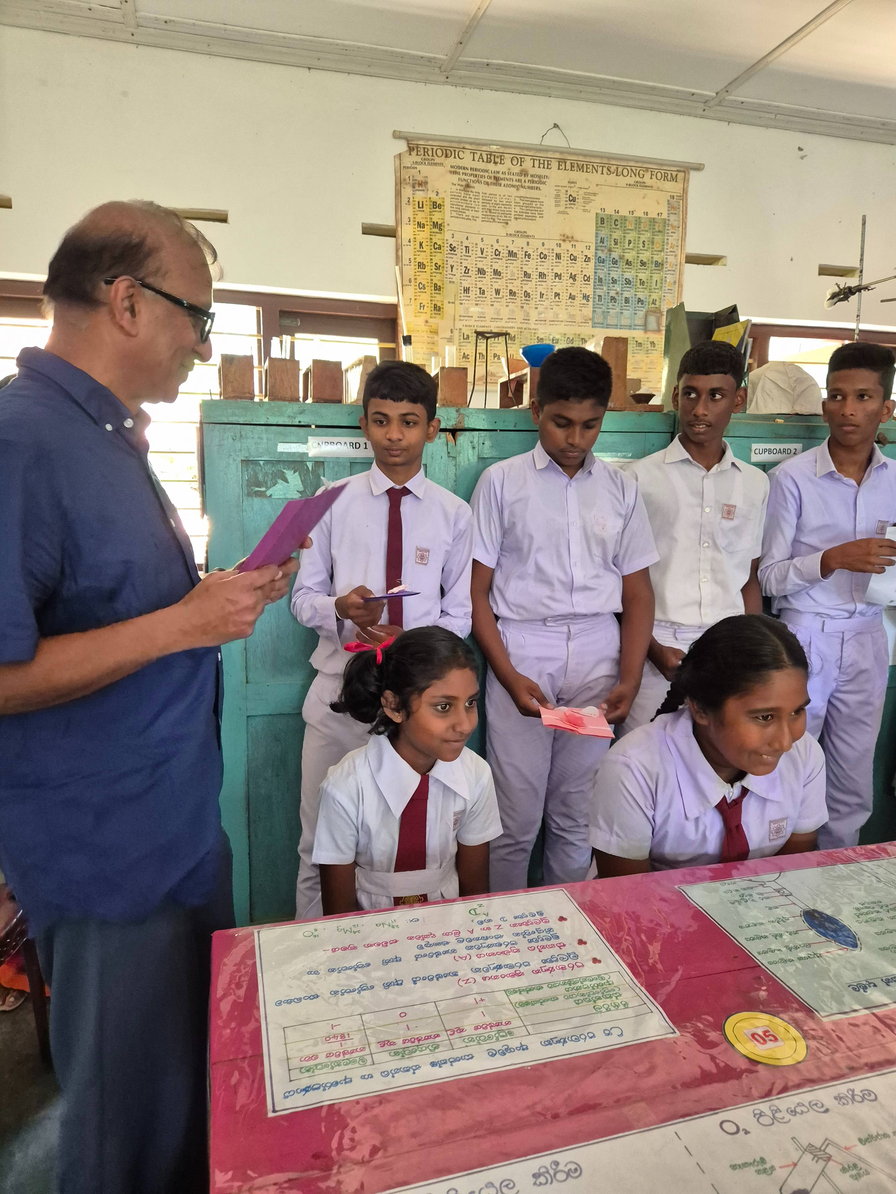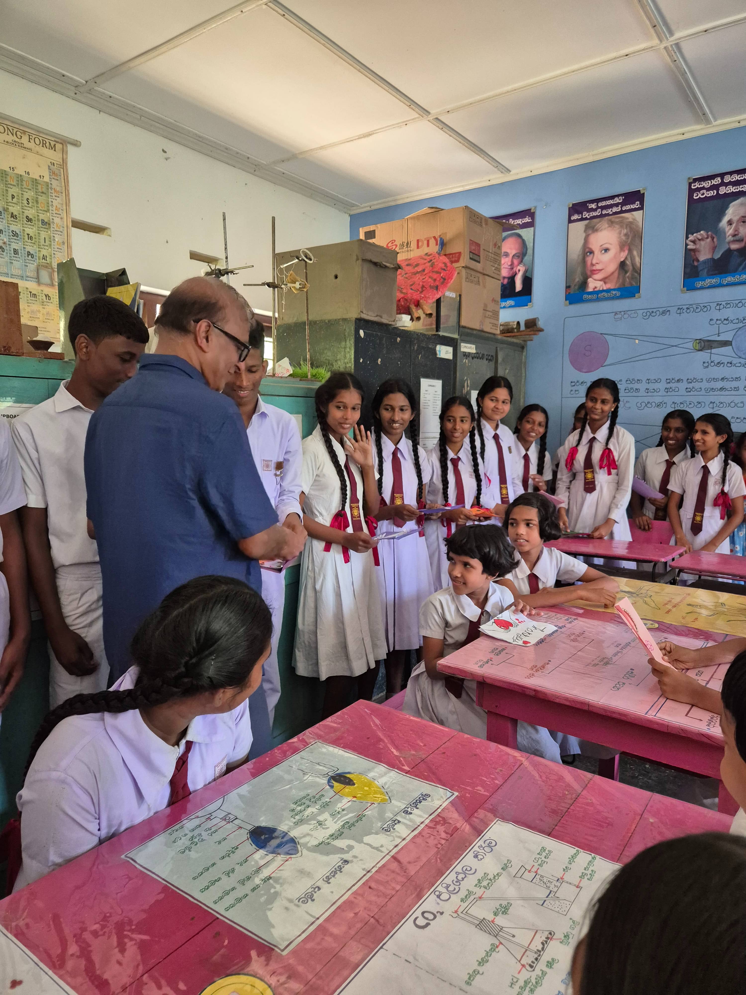 At a small ceremony held at the science lab,school Principal Ajith said that Devsiri Hewavidana, who donated over Rs. 2.5 million in equipment and buildings to schools, and provided scholarships and other assistance to school children, was a great asset to the entire Kamburupitiya.
