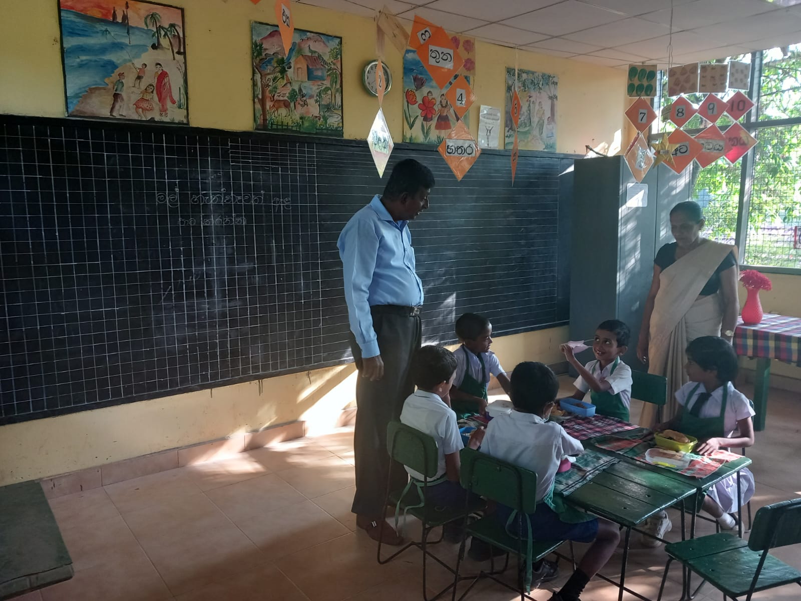 We eventually arrived in Galle for our stay at the Light House Hotel and where we also said goodbye to our driver. Our first day was spent by the pool and then it was time to meet up with Siri, his family Gill, Dan (Gills son) and meet hundreds of Siri’s cousins!!!! Our first tea party for some of the children and their families was held at Ruvini’s parents home. What a welcome we all received, whilst the children were arriving we sat down to some wonderful food. After we had finished eating we went outside where Val, Gill and I received some lovely flowers. There were a lot of speeches made by Headmasters and Headmistress’s, also Ruvini’s father and Siri.