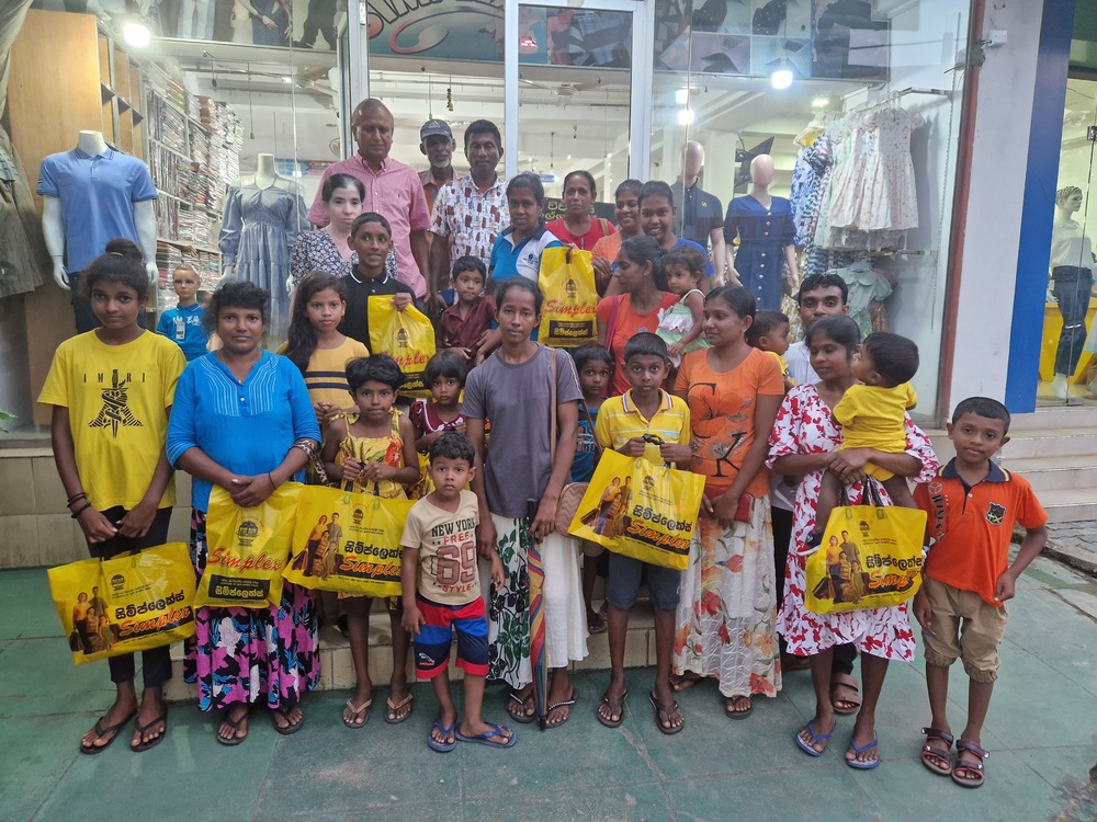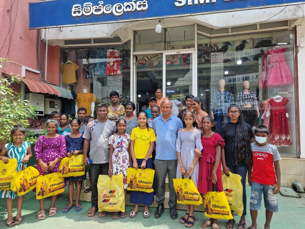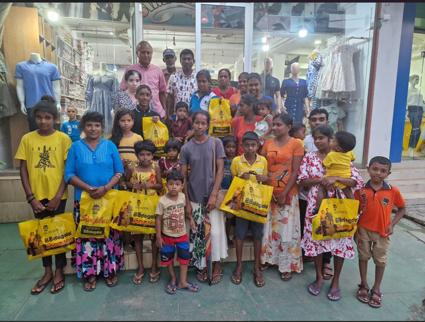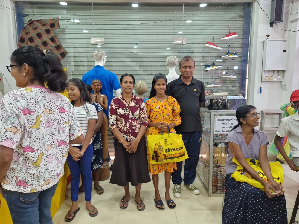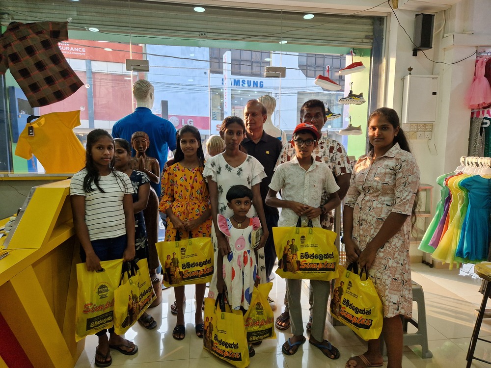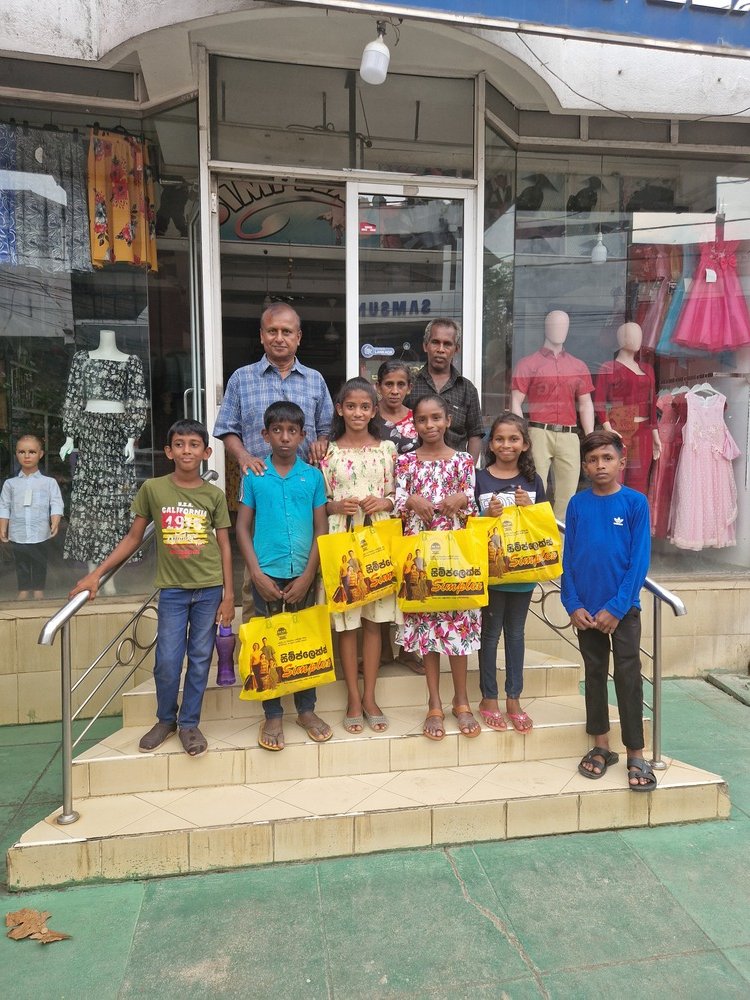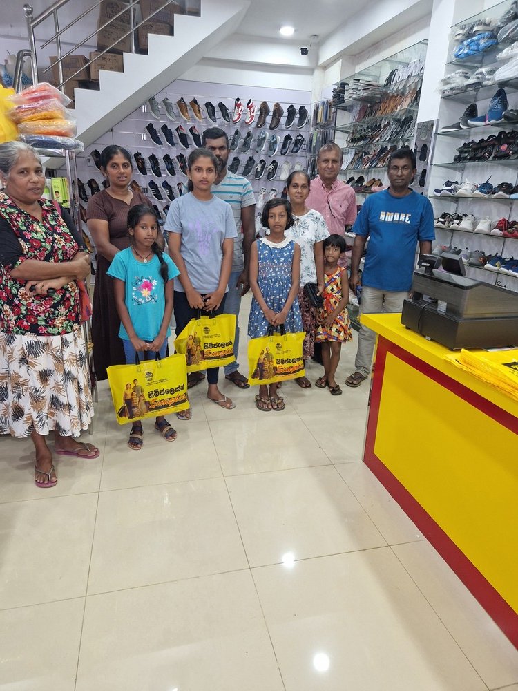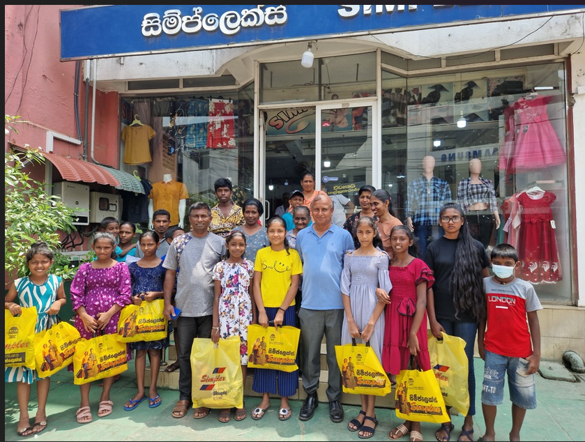 Mr. Devsiri Hewavidana, who was on vacation in Sri Lanka in March 2024 , had a clear understanding of the serious economic difficulties faced by parents in Kamburupitiya. When he realized that they did not have enough money to buy clothes for their children for the New Year, he discussed the sad situation with Mr. Sirisena, Honorary Chairman of UK Friends of Galle Foundation as to how they could help the poor parents. . Mr. Gamage, then spoke to some well-known businessmen in Kamburupitiya and asked if it would be possible for them to sell clothes to chosen group of children at a huge discount. Hearing this, Anura and Nadi Wickramasinghe, the owners of Simplex, the main designer clothes shop in Kamburupitiya, immediately agreed to his proposal. They kindly agreed to give new clothes to children at a very generous 25% discount . Also, the manager of DSI shoe shop in Kamburupitiya, Mr. Indunil Priyantha said that he and the directors of his company were very willing to participate in such a great meritorious act.