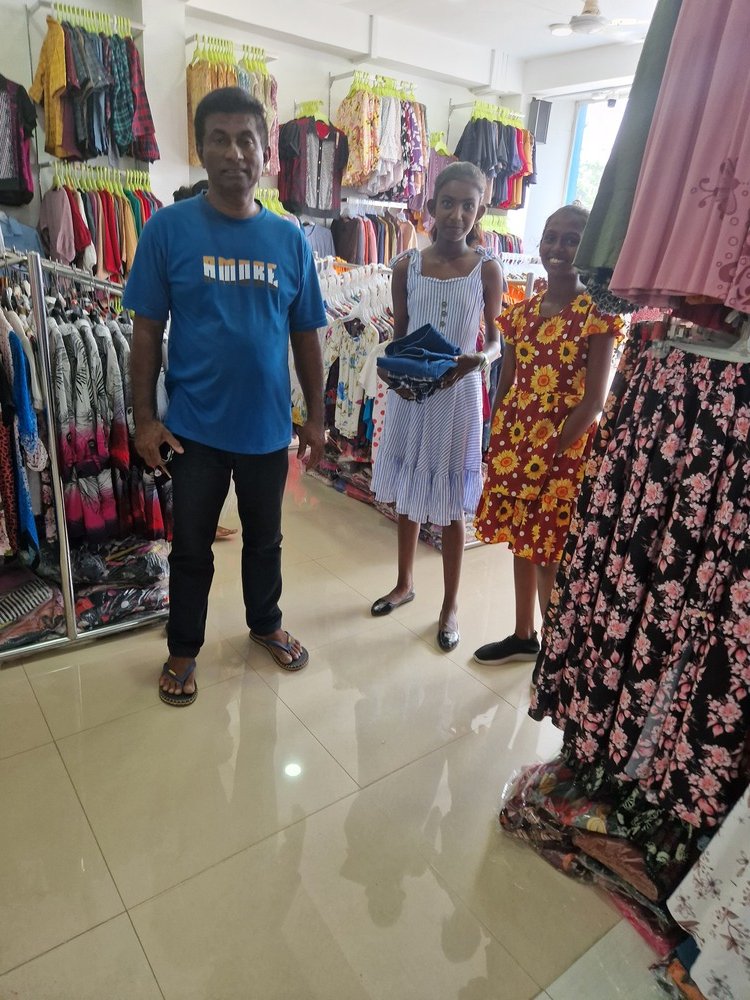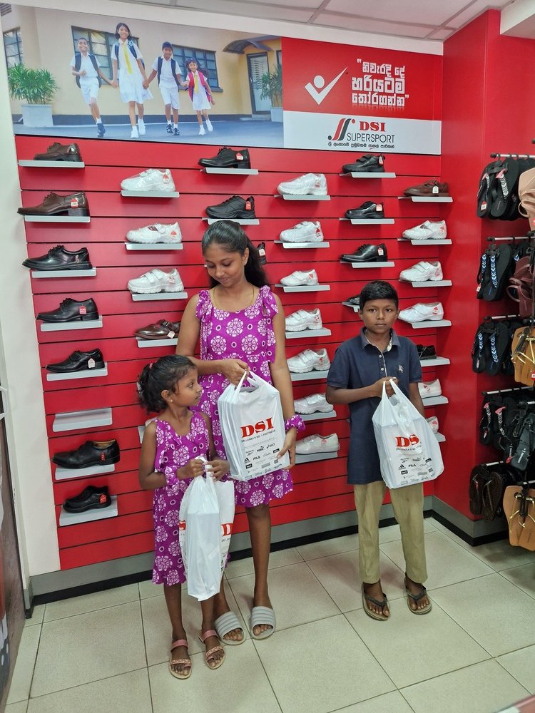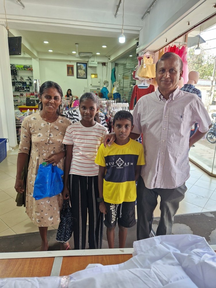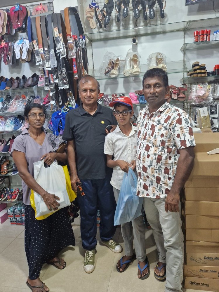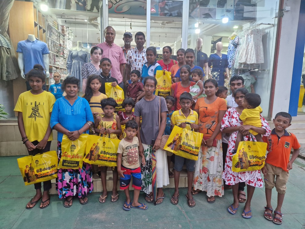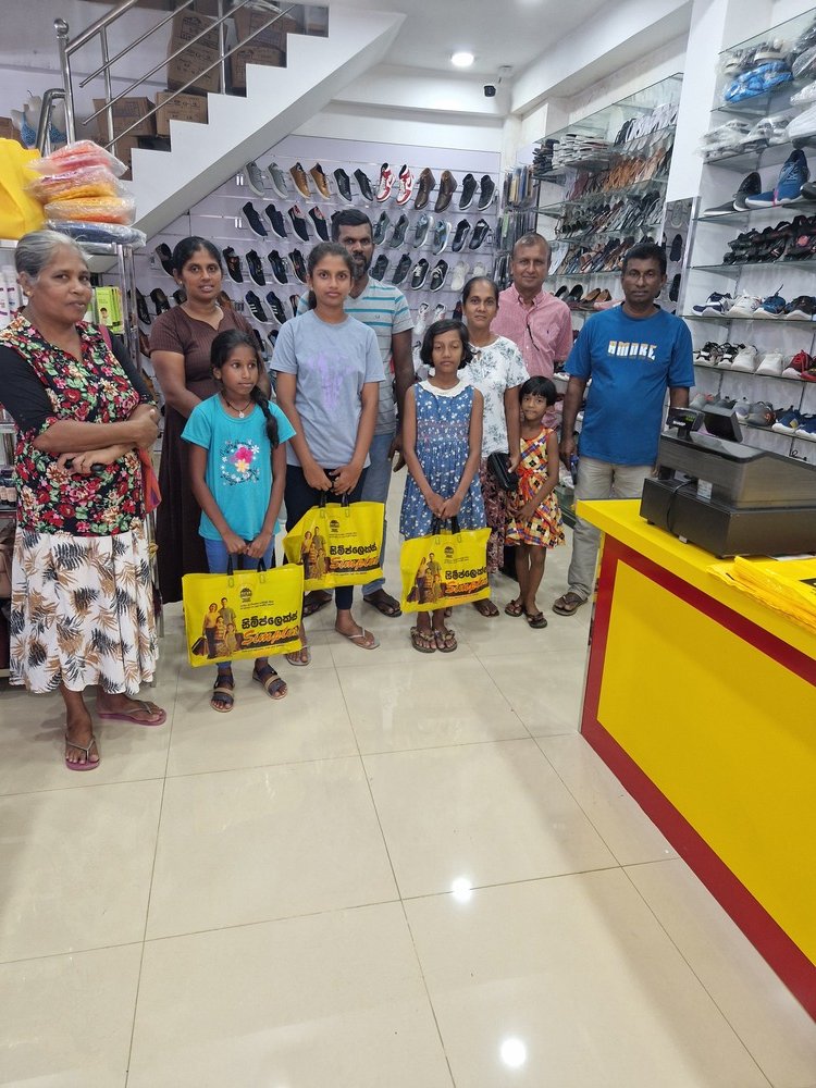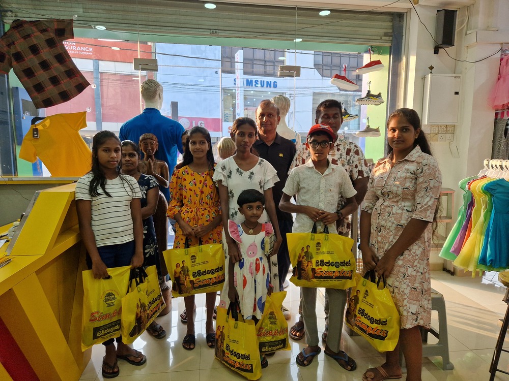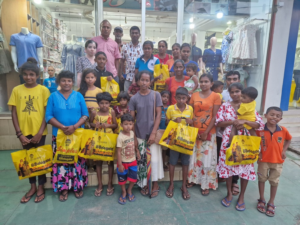 Mr. Devsiri Hewavidana, who was on vacation in Sri Lanka in March 2024 , had a clear understanding of the serious economic difficulties faced by parents in Kamburupitiya. When he realized that they did not have enough money to buy clothes for their children for the New Year, he discussed the sad situation with Mr. Sirisena, Honorary Chairman of UK Friends of Galle Foundation as to how they could help the poor parents. . Mr. Gamage, then spoke to some well-known businessmen in Kamburupitiya and asked if it would be possible for them to sell clothes to chosen group of children at a huge discount. Hearing this, Anura and Nadi Wickramasinghe, the owners of Simplex, the main designer clothes shop in Kamburupitiya, immediately agreed to his proposal. They kindly agreed to give new clothes to children at a very generous 25% discount . Also, the manager of DSI shoe shop in Kamburupitiya, Mr. Indunil Priyantha said that he and the directors of his company were very willing to participate in such a great meritorious act.