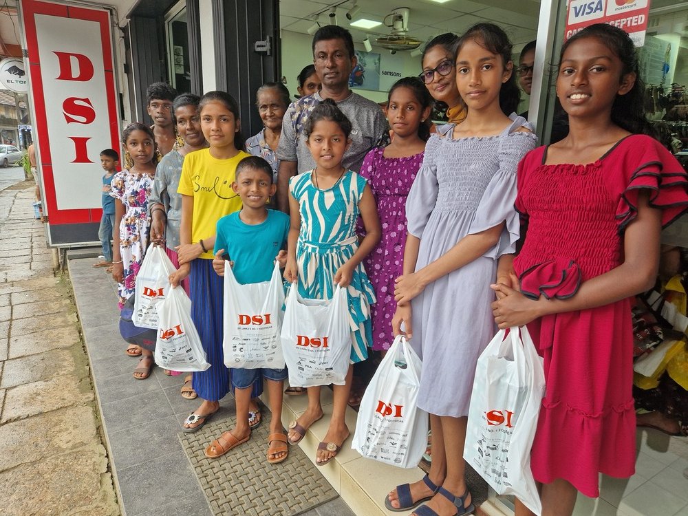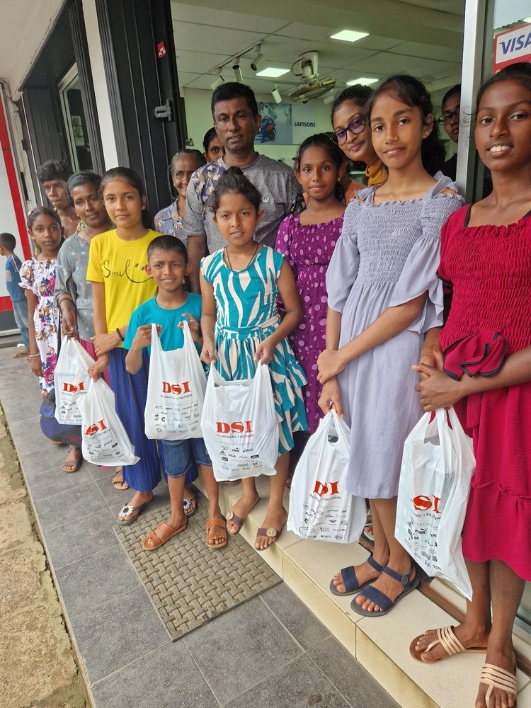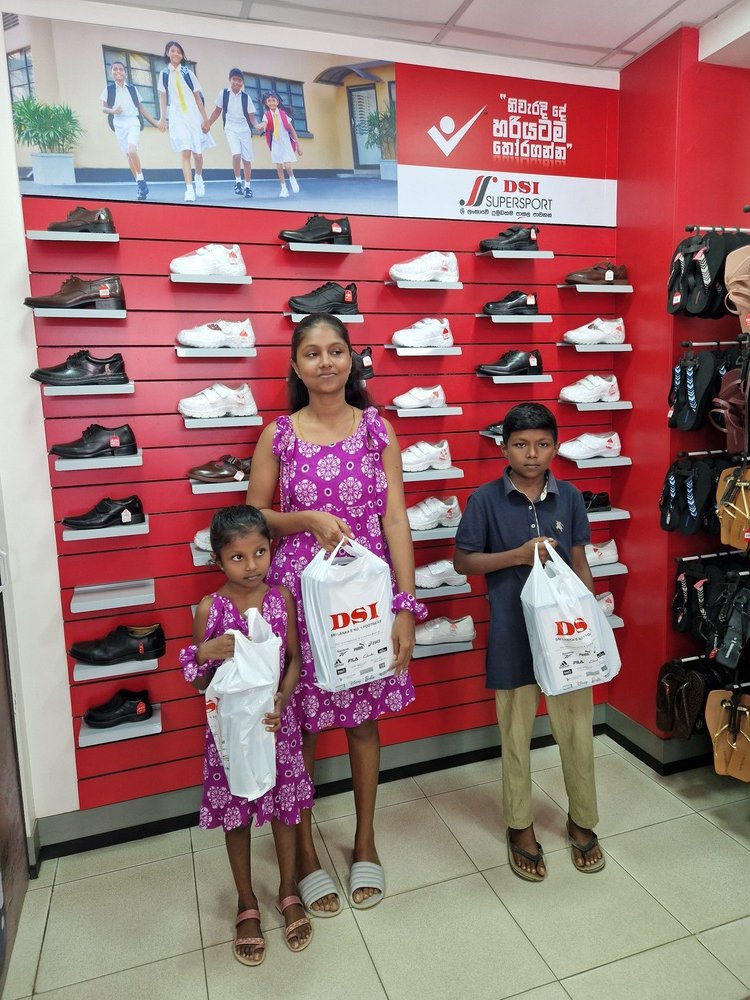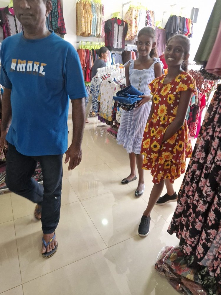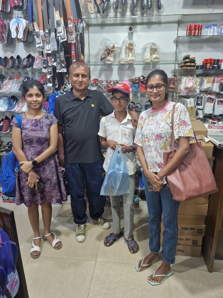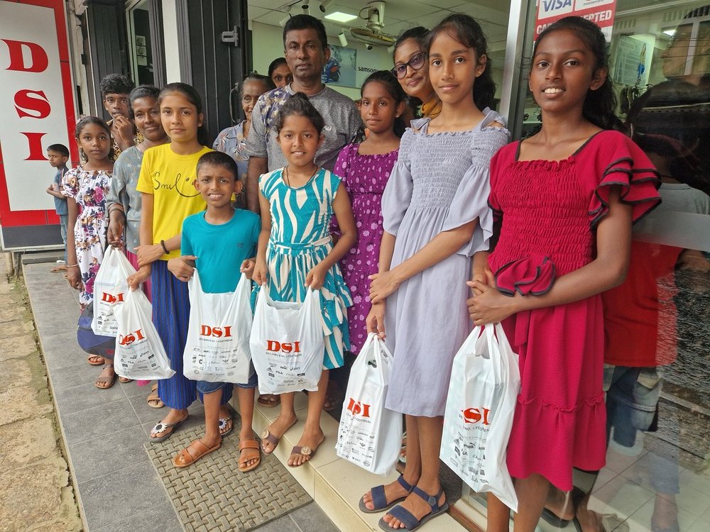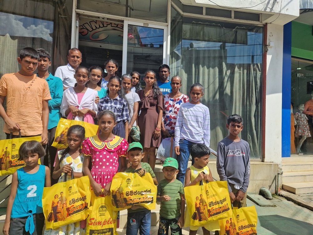Mr. Devsiri Hewavidana, who was on vacation in Sri Lanka in March 2024 , had a clear understanding of the serious economic difficulties faced by parents in Kamburupitiya. When he realized that they did not have enough money to buy clothes for their children for the New Year, he discussed the sad situation with Mr. Sirisena, Honorary Chairman of UK Friends of Galle Foundation as to how they could help the poor parents. . Mr. Gamage, then spoke to some well-known businessmen in Kamburupitiya and asked if it would be possible for them to sell clothes to chosen group of children at a huge discount. Hearing this, Anura and Nadi Wickramasinghe, the owners of Simplex, the main designer clothes shop in Kamburupitiya, immediately agreed to his proposal. They kindly agreed to give new clothes to children at a very generous 25% discount . Also, the manager of DSI shoe shop in Kamburupitiya, Mr. Indunil Priyantha said that he and the directors of his company were very willing to participate in such a great meritorious act.