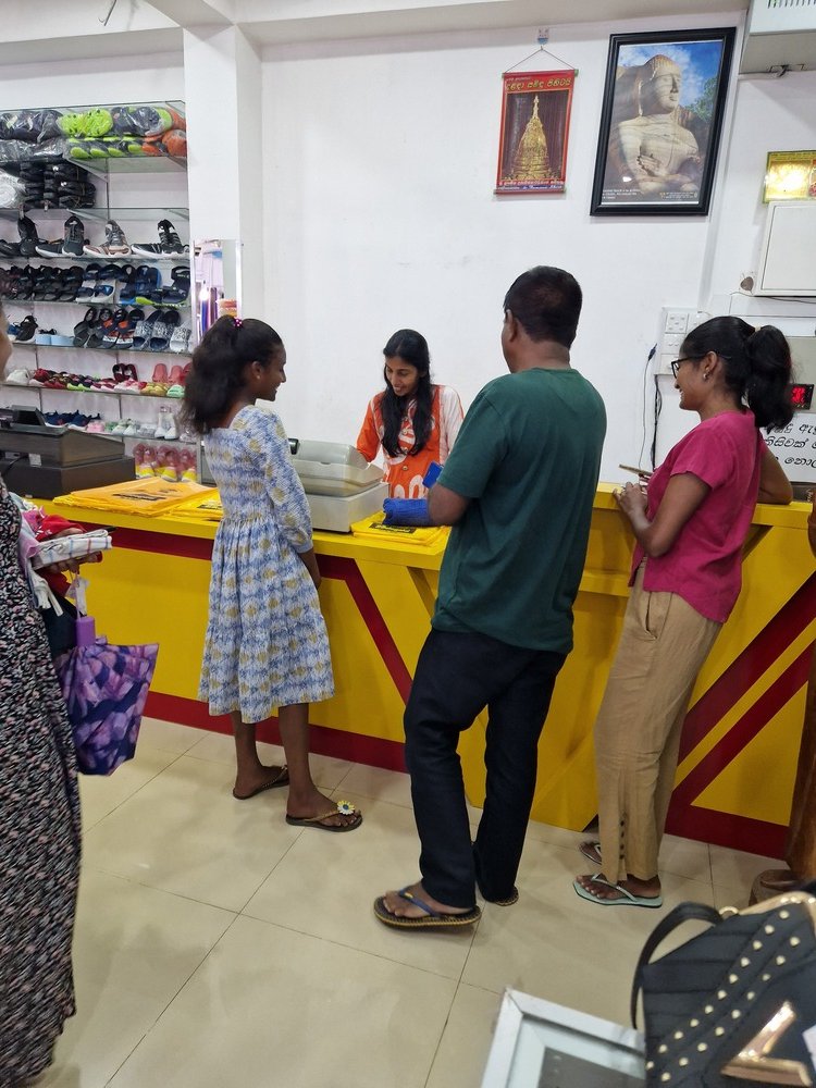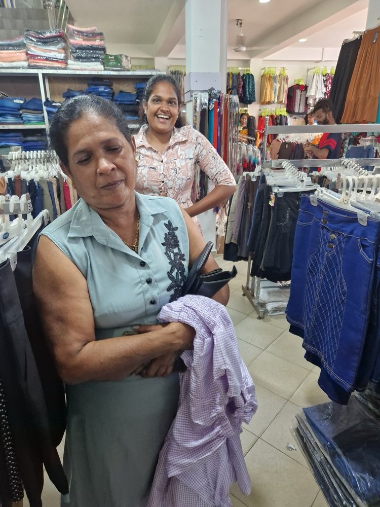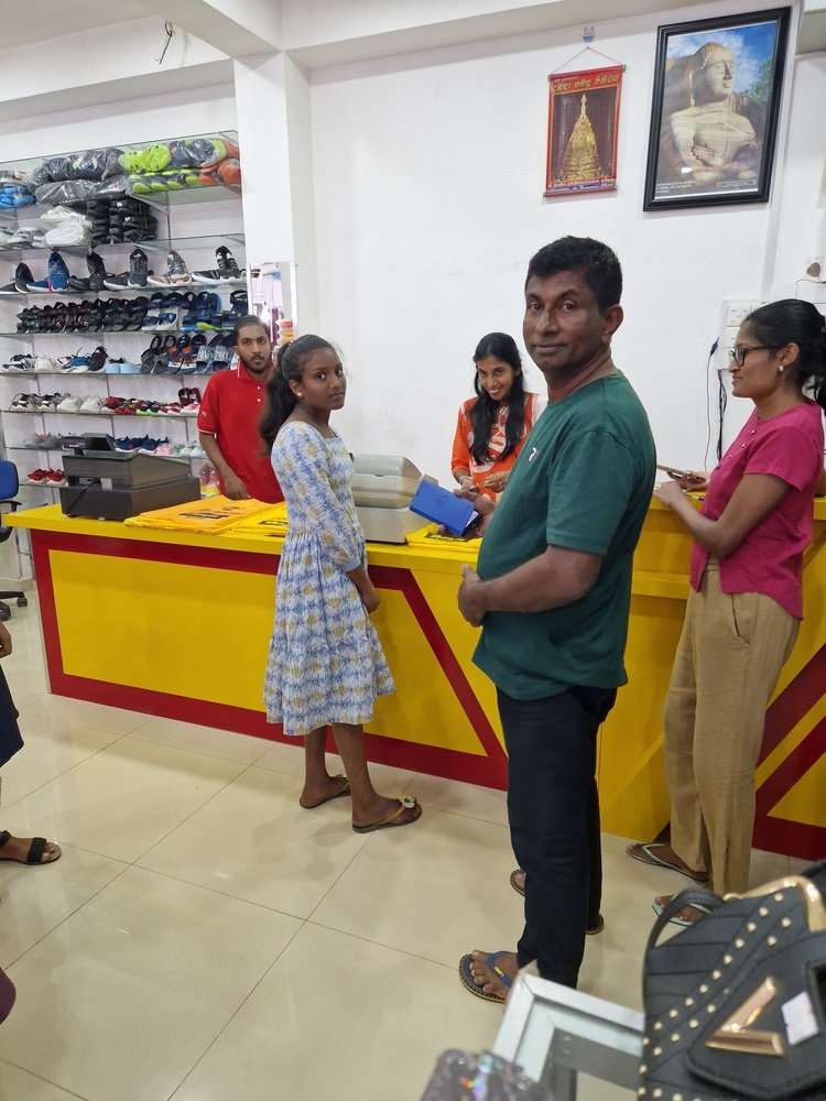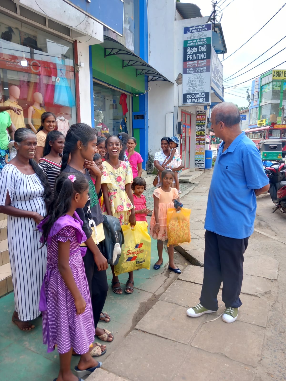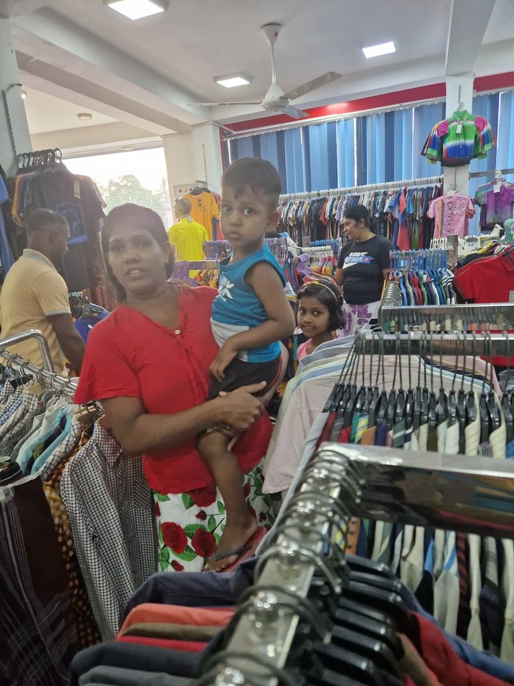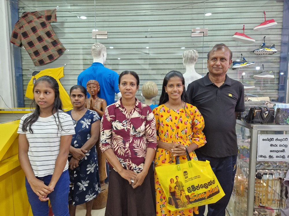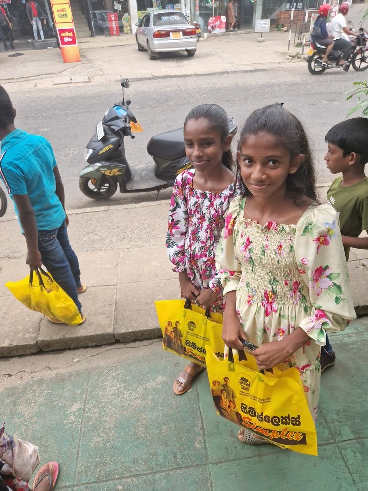 Mr. Devsiri Hewavidana, who was on vacation in Sri Lanka in March 2024 , had a clear understanding of the serious economic difficulties faced by parents in Kamburupitiya. When he realized that they did not have enough money to buy clothes for their children for the New Year, he discussed the sad situation with Mr. Sirisena, Honorary Chairman of UK Friends of Galle Foundation as to how they could help the poor parents. . Mr. Gamage, then spoke to some well-known businessmen in Kamburupitiya and asked if it would be possible for them to sell clothes to chosen group of children at a huge discount. Hearing this, Anura and Nadi Wickramasinghe, the owners of Simplex, the main designer clothes shop in Kamburupitiya, immediately agreed to his proposal. They kindly agreed to give new clothes to children at a very generous 25% discount . Also, the manager of DSI shoe shop in Kamburupitiya, Mr. Indunil Priyantha said that he and the directors of his company were very willing to participate in such a great meritorious act.