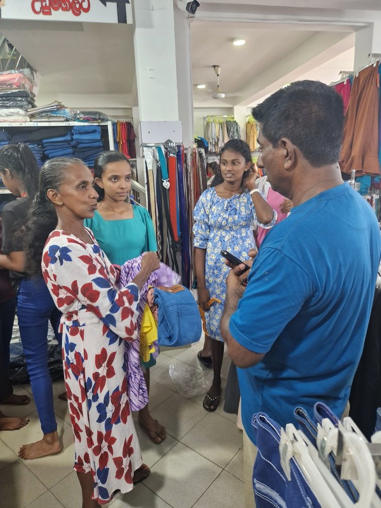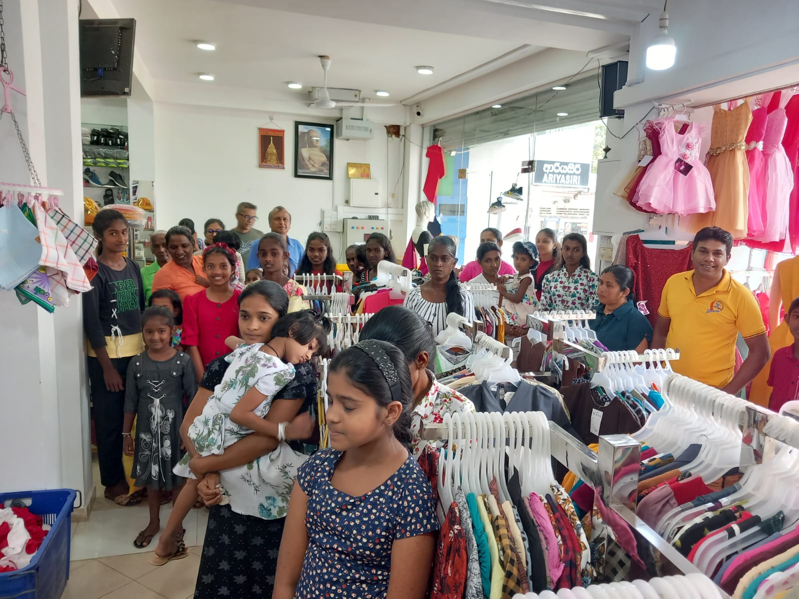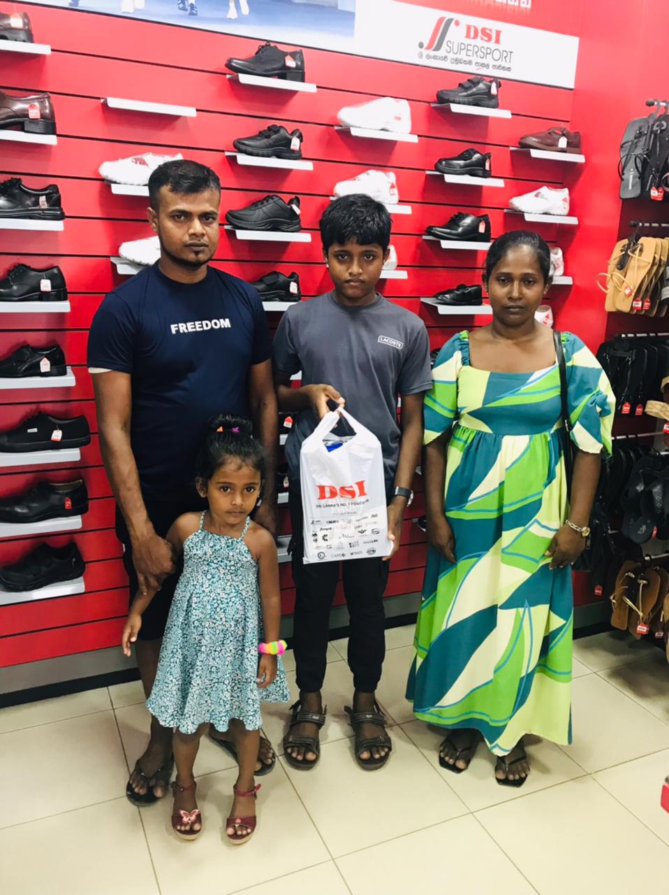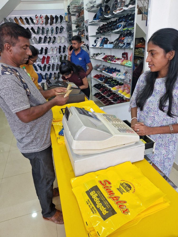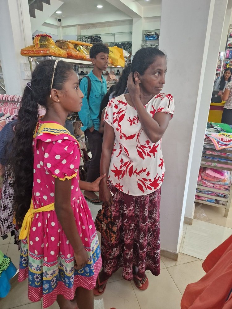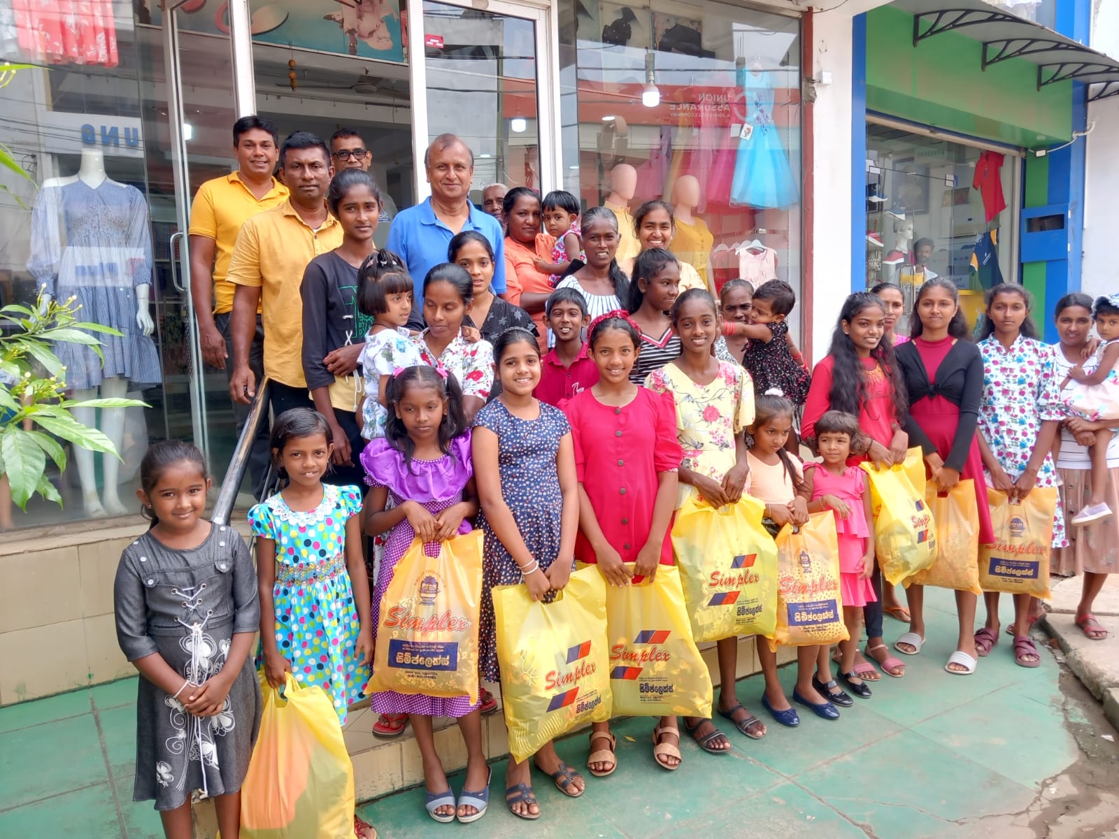 Mr. Devsiri Hewavidana, who was on vacation in Sri Lanka in March 2024 , had a clear understanding of the serious economic difficulties faced by parents in Kamburupitiya. When he realized that they did not have enough money to buy clothes for their children for the New Year, he discussed the sad situation with Mr. Sirisena, Honorary Chairman of UK Friends of Galle Foundation as to how they could help the poor parents. . Mr. Gamage, then spoke to some well-known businessmen in Kamburupitiya and asked if it would be possible for them to sell clothes to chosen group of children at a huge discount. Hearing this, Anura and Nadi Wickramasinghe, the owners of Simplex, the main designer clothes shop in Kamburupitiya, immediately agreed to his proposal. They kindly agreed to give new clothes to children at a very generous 25% discount . Also, the manager of DSI shoe shop in Kamburupitiya, Mr. Indunil Priyantha said that he and the directors of his company were very willing to participate in such a great meritorious act.