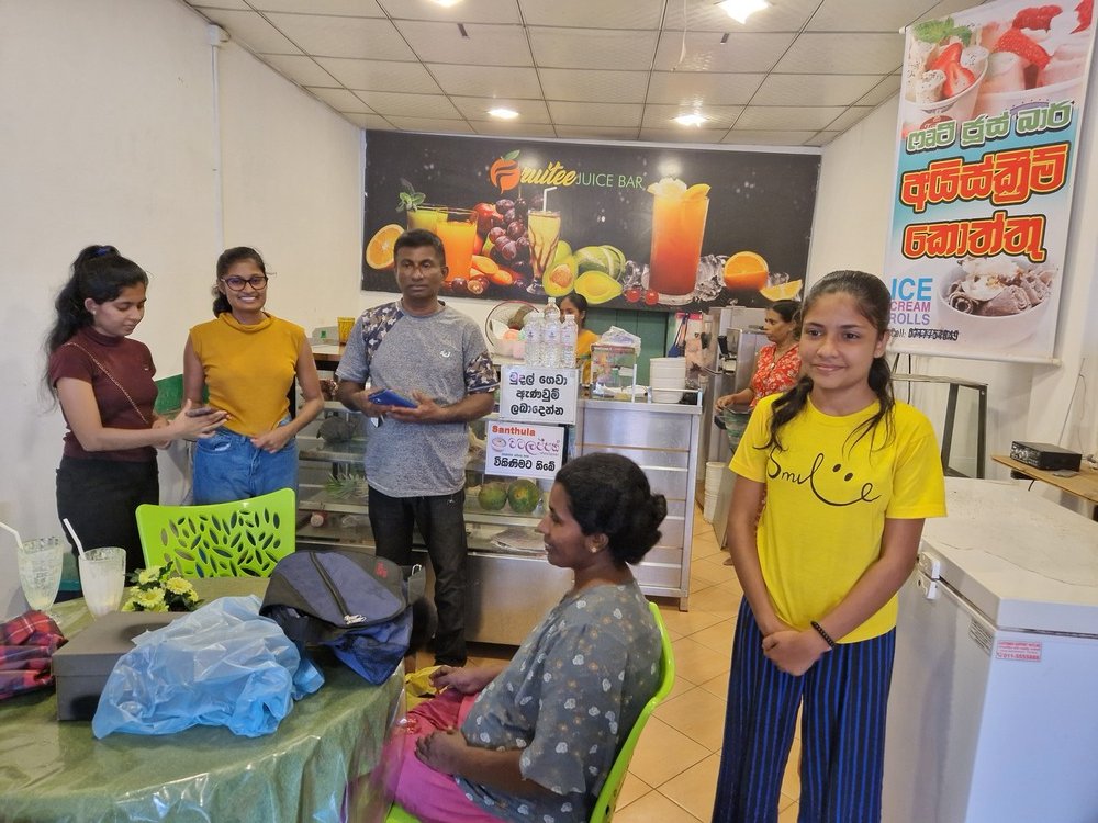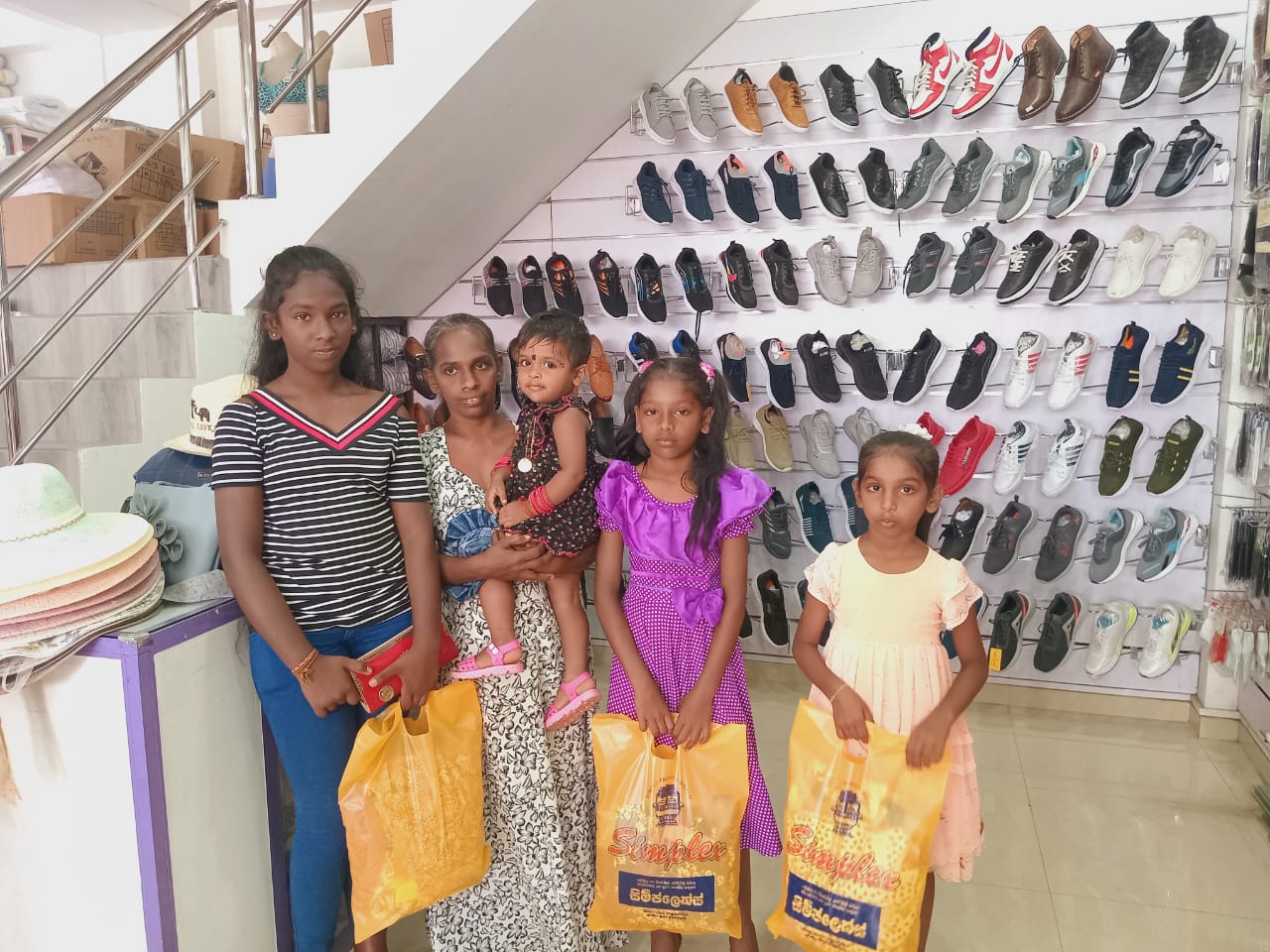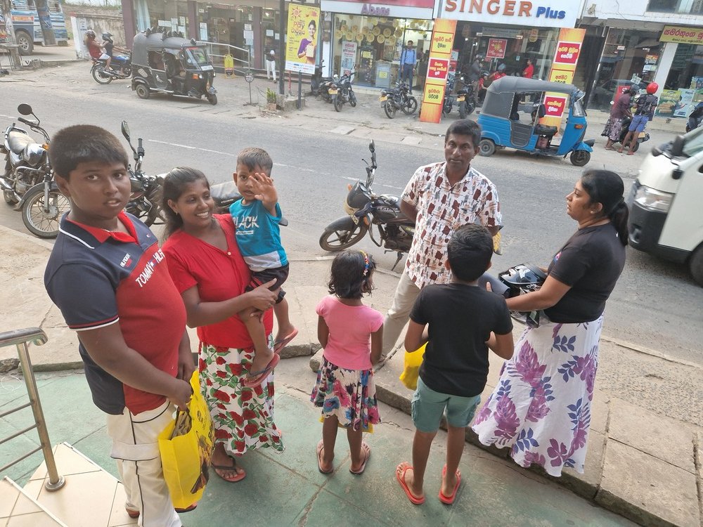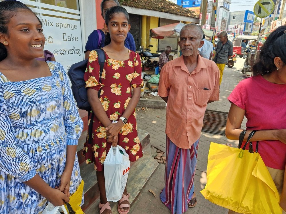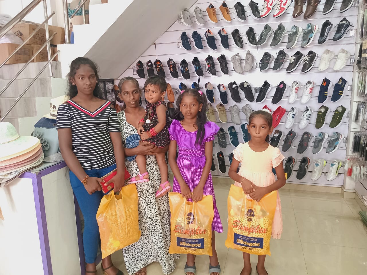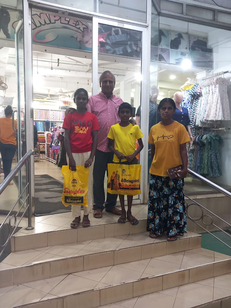 Mr. Devsiri Hewavidana, who was on vacation in Sri Lanka in March 2024 , had a clear understanding of the serious economic difficulties faced by parents in Kamburupitiya. When he realized that they did not have enough money to buy clothes for their children for the New Year, he discussed the sad situation with Mr. Sirisena, Honorary Chairman of UK Friends of Galle Foundation as to how they could help the poor parents. . Mr. Gamage, then spoke to some well-known businessmen in Kamburupitiya and asked if it would be possible for them to sell clothes to chosen group of children at a huge discount. Hearing this, Anura and Nadi Wickramasinghe, the owners of Simplex, the main designer clothes shop in Kamburupitiya, immediately agreed to his proposal. They kindly agreed to give new clothes to children at a very generous 25% discount . Also, the manager of DSI shoe shop in Kamburupitiya, Mr. Indunil Priyantha said that he and the directors of his company were very willing to participate in such a great meritorious act.