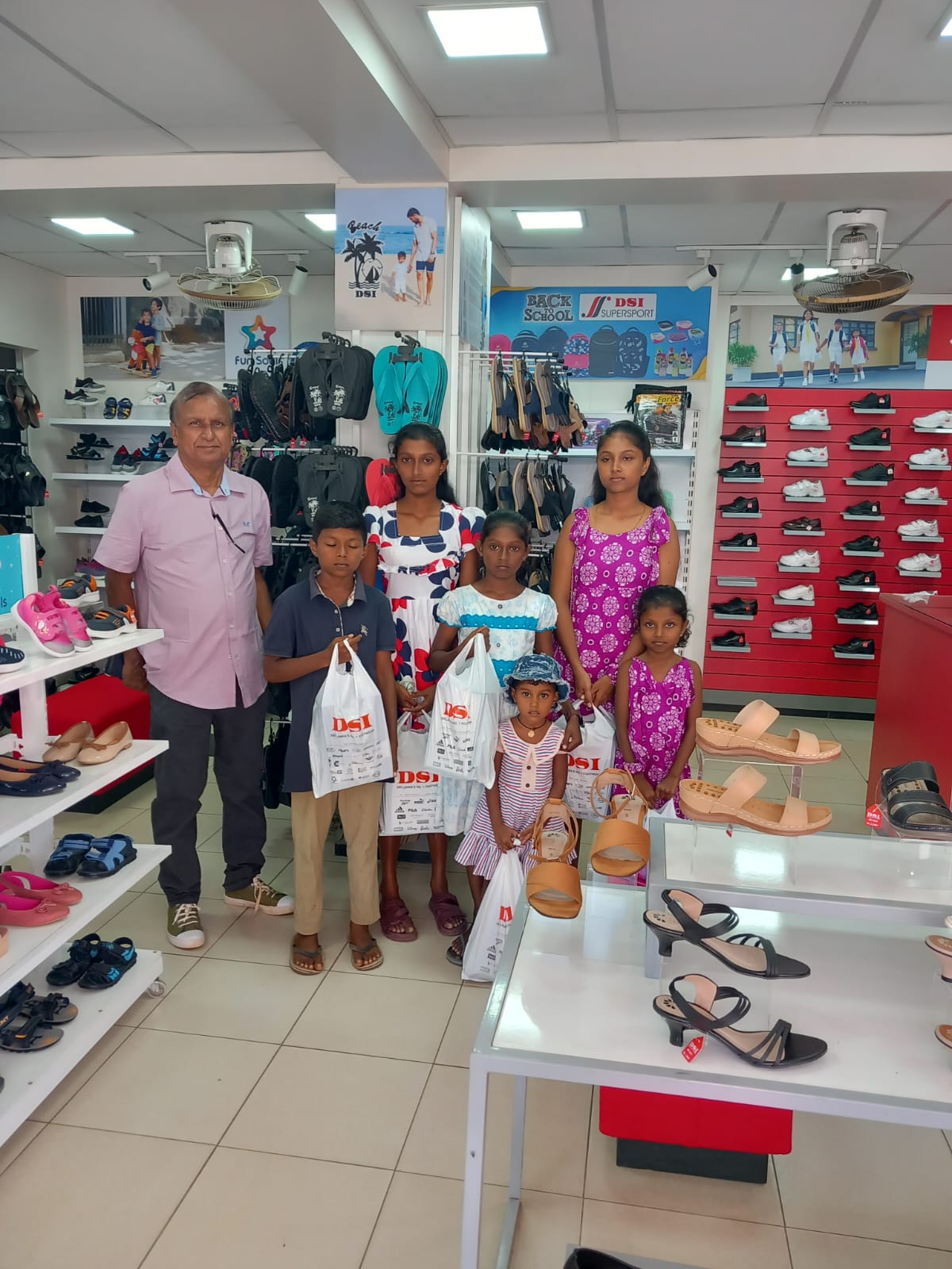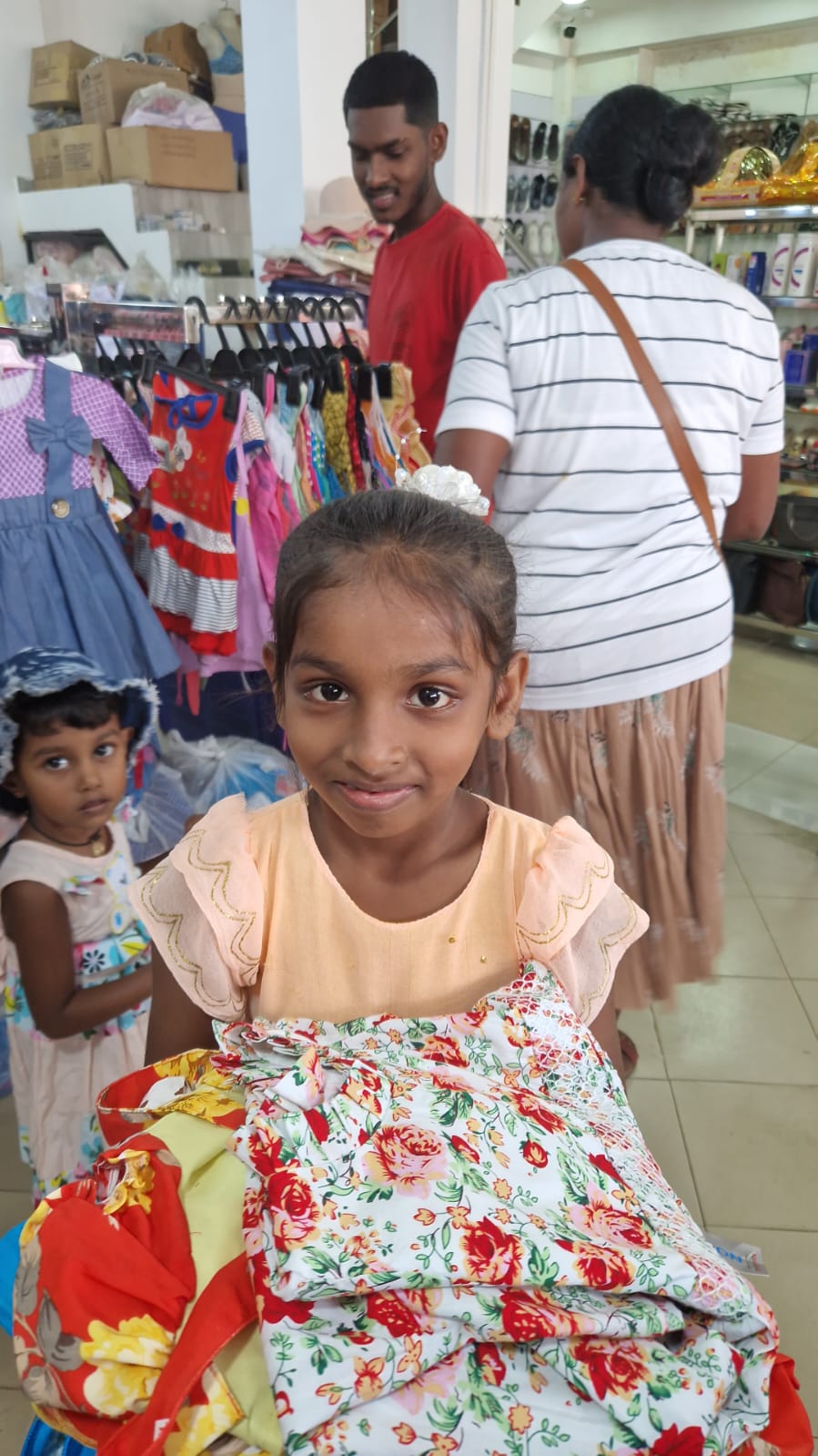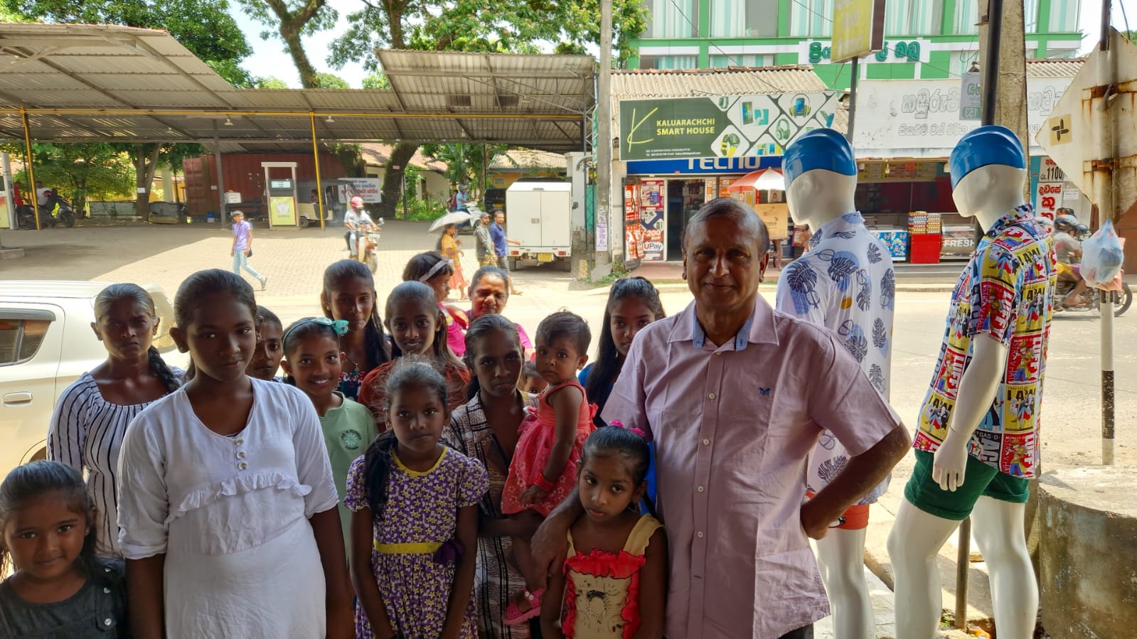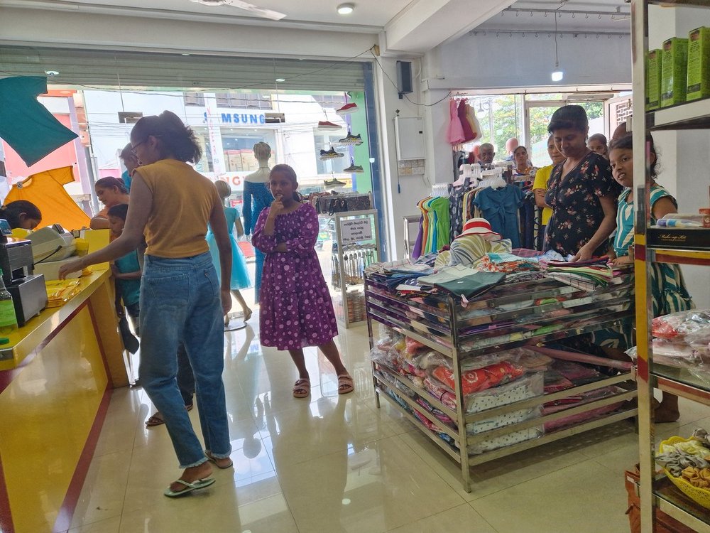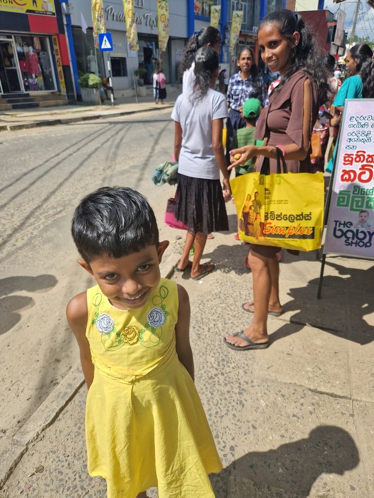 Mr. Devsiri Hewavidana, who was on vacation in Sri Lanka in March 2024 , had a clear understanding of the serious economic difficulties faced by parents in Kamburupitiya. When he realized that they did not have enough money to buy clothes for their children for the New Year, he discussed the sad situation with Mr. Sirisena, Honorary Chairman of UK Friends of Galle Foundation as to how they could help the poor parents. . Mr. Gamage, then spoke to some well-known businessmen in Kamburupitiya and asked if it would be possible for them to sell clothes to chosen group of children at a huge discount. Hearing this, Anura and Nadi Wickramasinghe, the owners of Simplex, the main designer clothes shop in Kamburupitiya, immediately agreed to his proposal. They kindly agreed to give new clothes to children at a very generous 25% discount . Also, the manager of DSI shoe shop in Kamburupitiya, Mr. Indunil Priyantha said that he and the directors of his company were very willing to participate in such a great meritorious act.