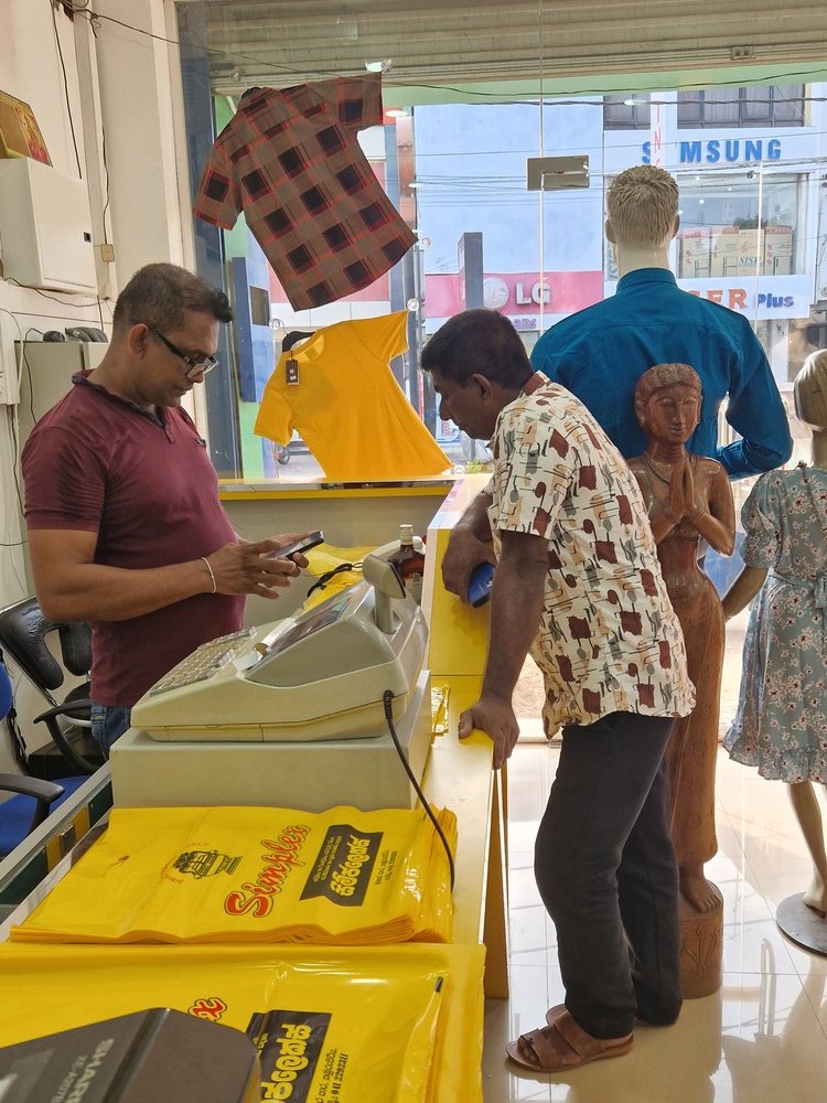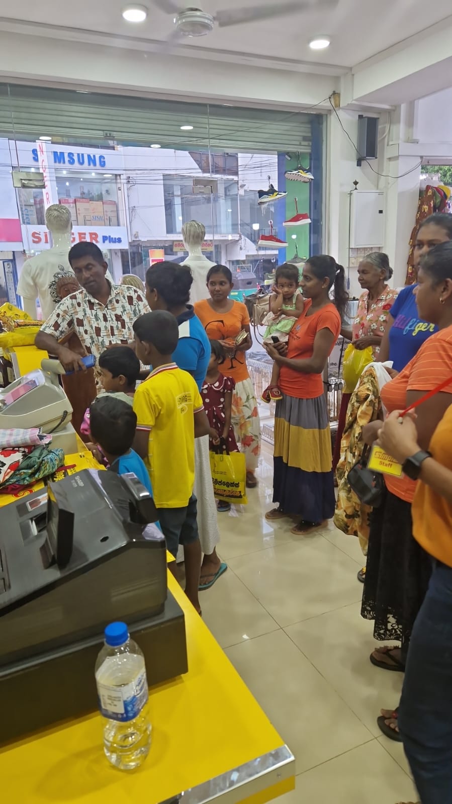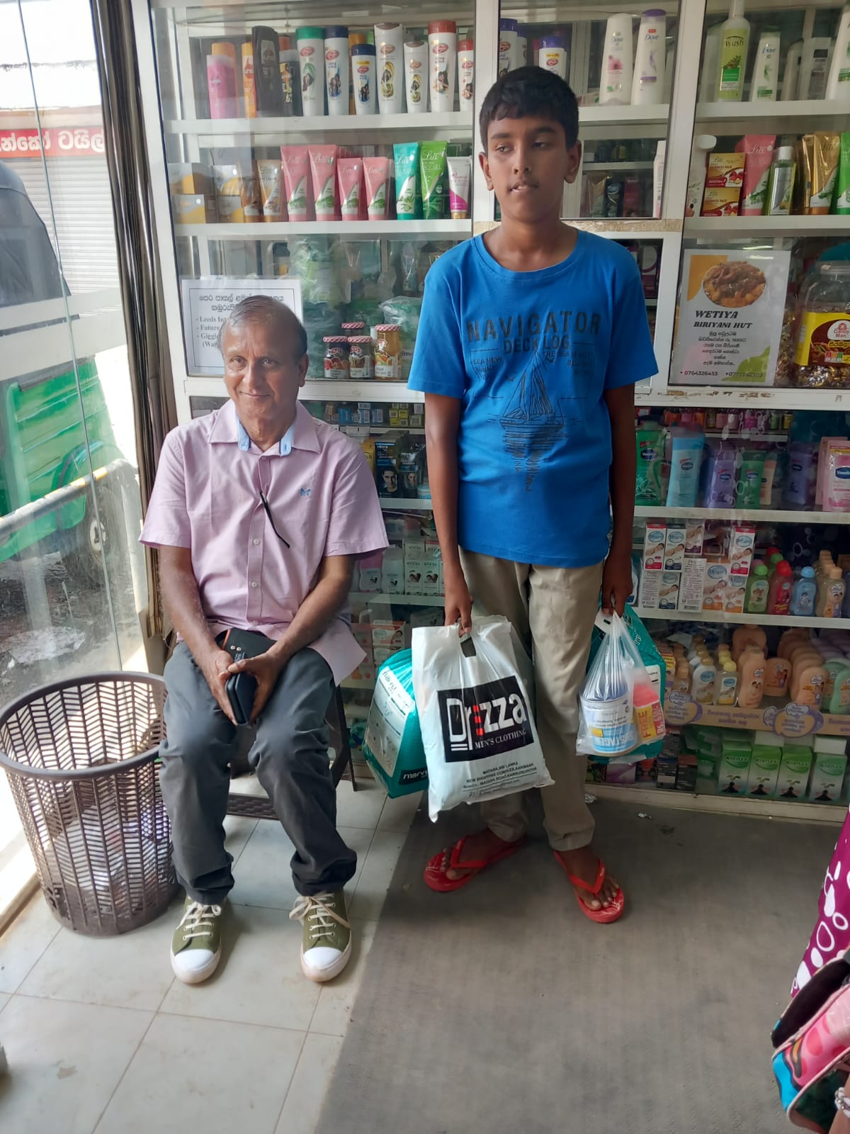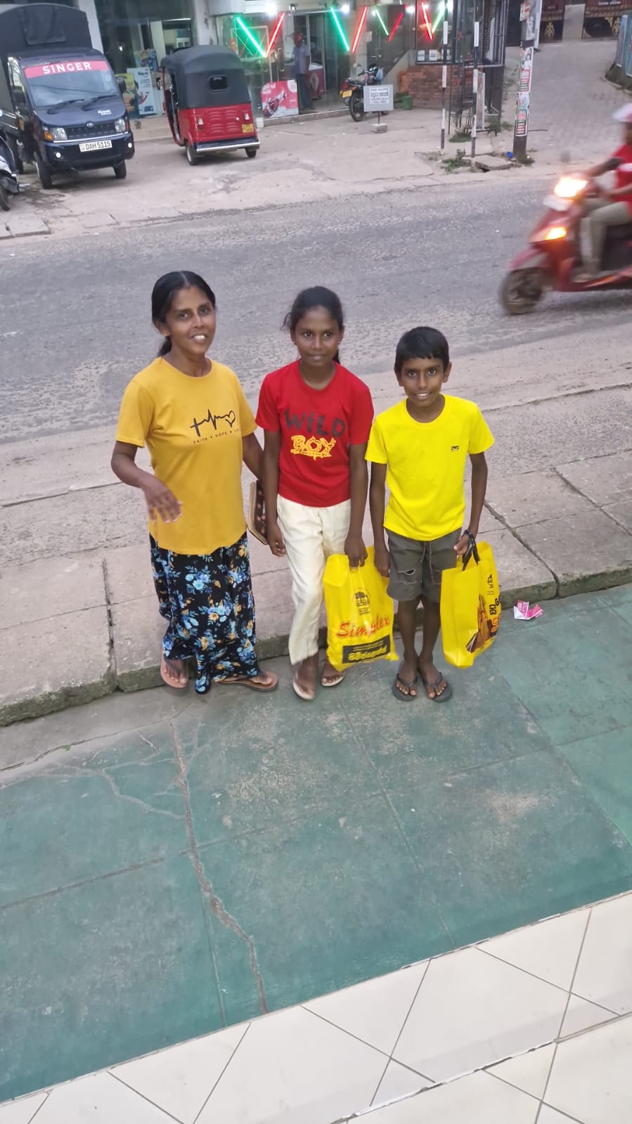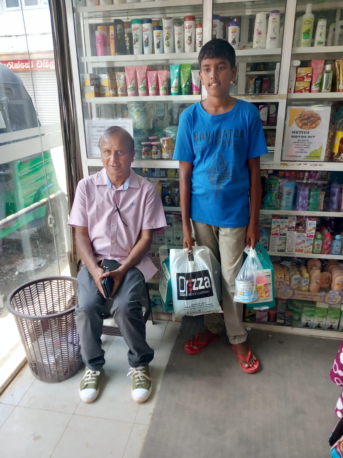 Mr. Devsiri Hewavidana, who was on vacation in Sri Lanka in March 2024 , had a clear understanding of the serious economic difficulties faced by parents in Kamburupitiya. When he realized that they did not have enough money to buy clothes for their children for the New Year, he discussed the sad situation with Mr. Sirisena, Honorary Chairman of UK Friends of Galle Foundation as to how they could help the poor parents. . Mr. Gamage, then spoke to some well-known businessmen in Kamburupitiya and asked if it would be possible for them to sell clothes to chosen group of children at a huge discount. Hearing this, Anura and Nadi Wickramasinghe, the owners of Simplex, the main designer clothes shop in Kamburupitiya, immediately agreed to his proposal. They kindly agreed to give new clothes to children at a very generous 25% discount . Also, the manager of DSI shoe shop in Kamburupitiya, Mr. Indunil Priyantha said that he and the directors of his company were very willing to participate in such a great meritorious act.