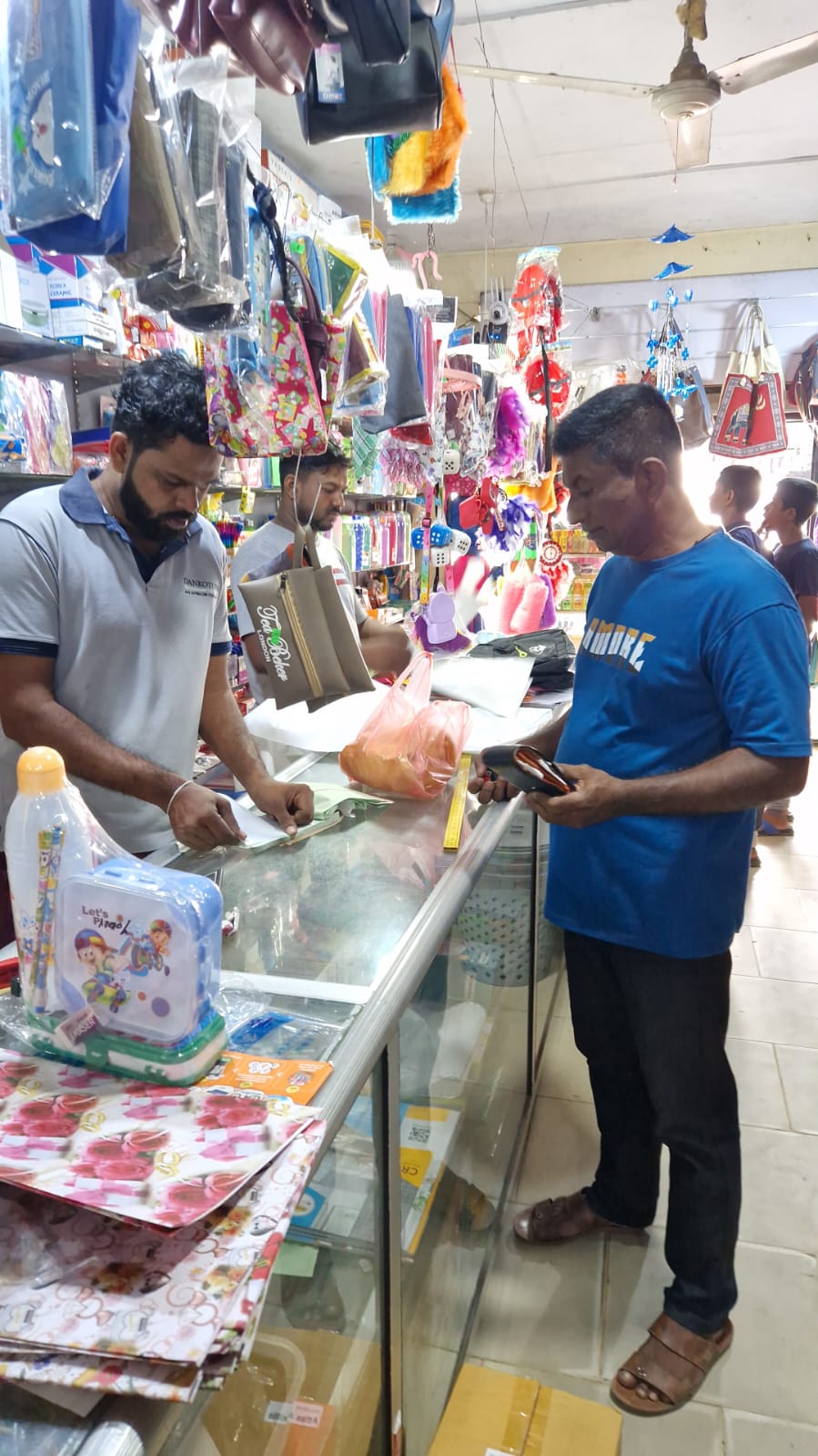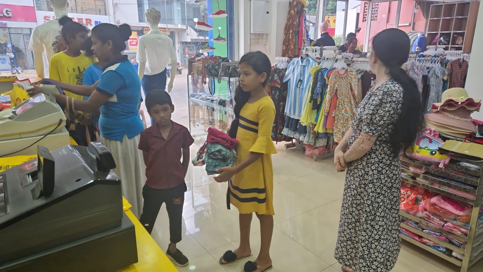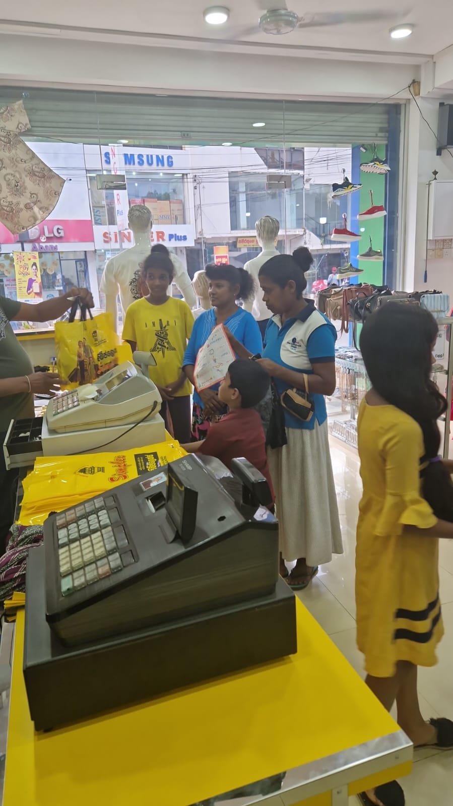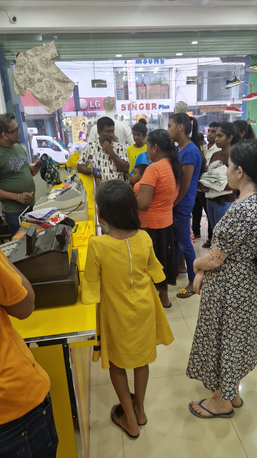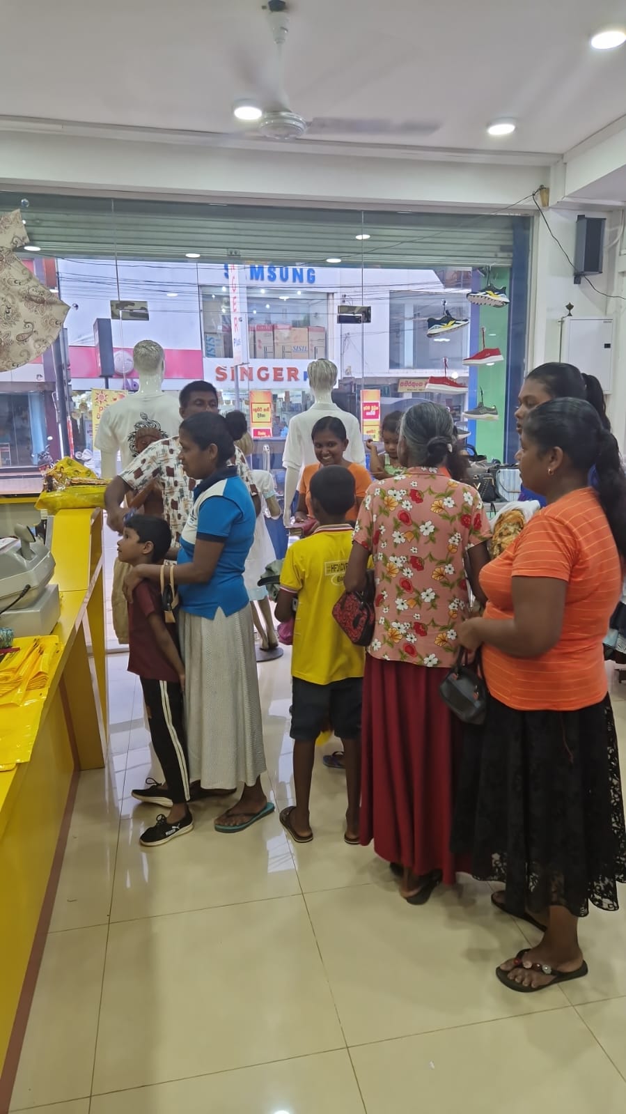 Mr. Devsiri Hewavidana, who was on vacation in Sri Lanka in March 2024 , had a clear understanding of the serious economic difficulties faced by parents in Kamburupitiya. When he realized that they did not have enough money to buy clothes for their children for the New Year, he discussed the sad situation with Mr. Sirisena, Honorary Chairman of UK Friends of Galle Foundation as to how they could help the poor parents. . Mr. Gamage, then spoke to some well-known businessmen in Kamburupitiya and asked if it would be possible for them to sell clothes to chosen group of children at a huge discount. Hearing this, Anura and Nadi Wickramasinghe, the owners of Simplex, the main designer clothes shop in Kamburupitiya, immediately agreed to his proposal. They kindly agreed to give new clothes to children at a very generous 25% discount . Also, the manager of DSI shoe shop in Kamburupitiya, Mr. Indunil Priyantha said that he and the directors of his company were very willing to participate in such a great meritorious act.
