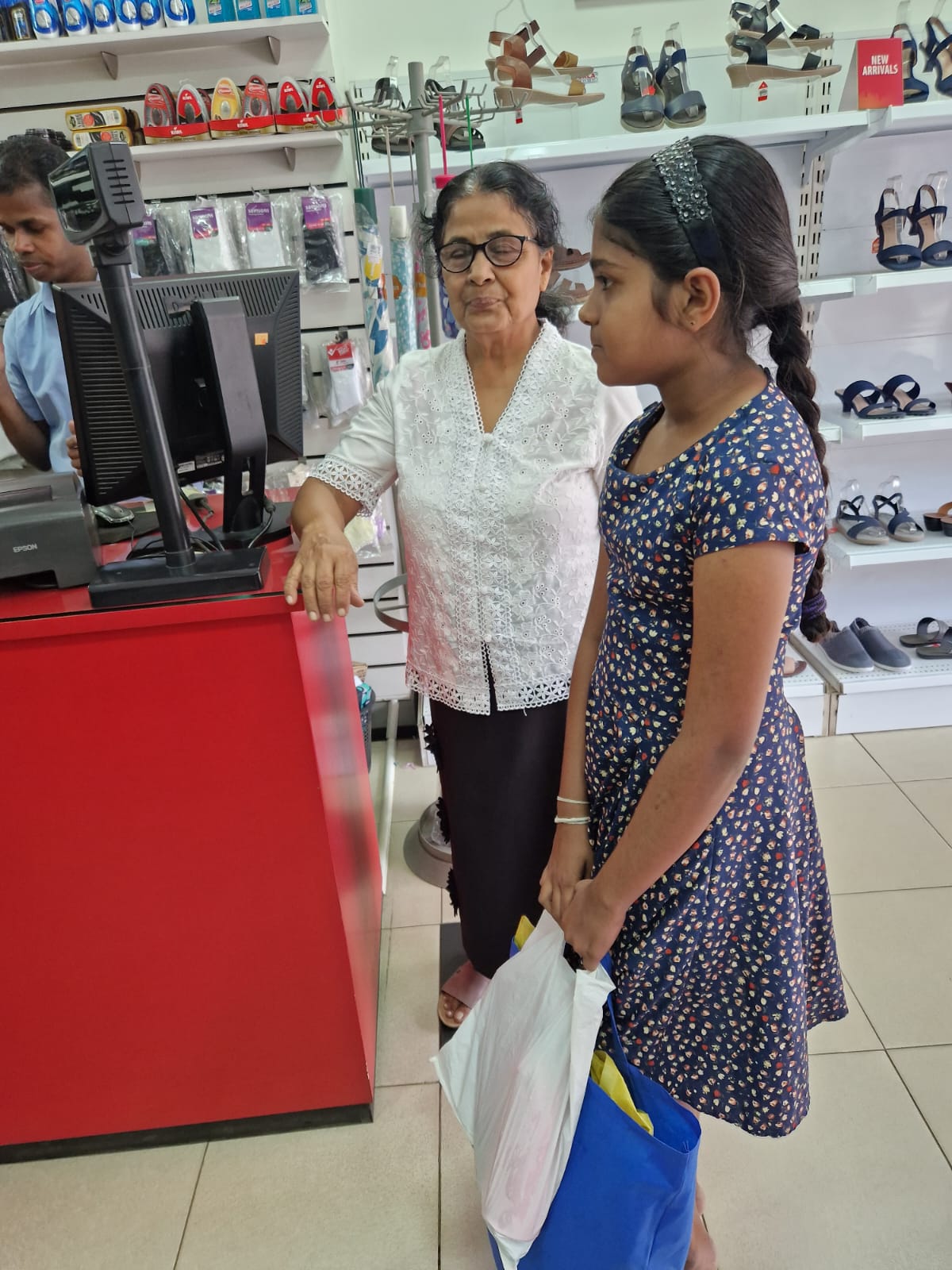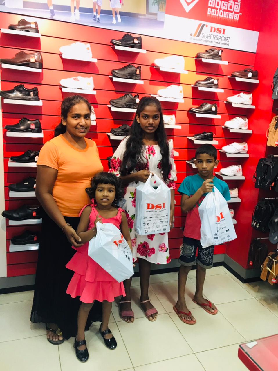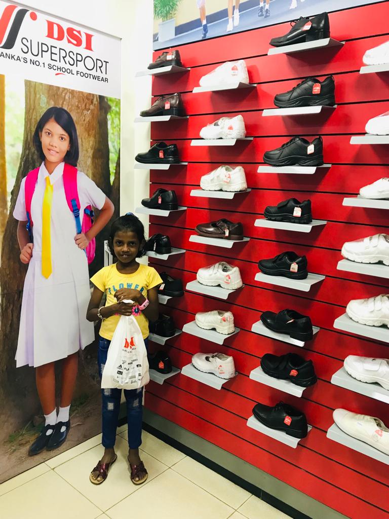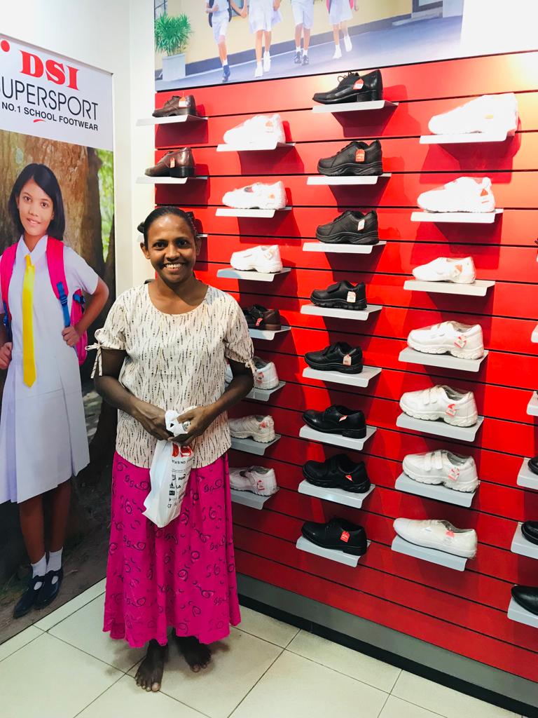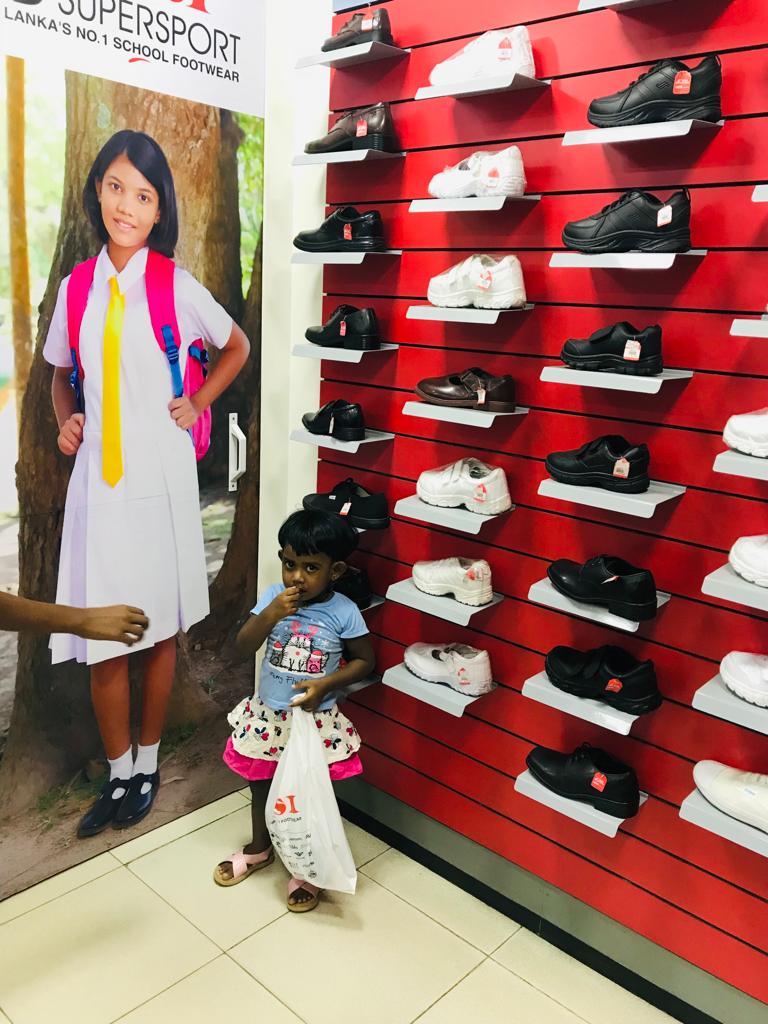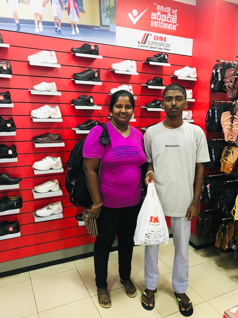 This extra discounts offered by both shops made it possible for UKFG to give New Year gifts to more children than they expected. During the ten days before the Sinhala New Year, with the help of Mr. Ananda Hewavidana and the new scholarship officer Miss Imasha, 60 children with their parents were brought to the Simplex store in small groups. When the children were told to choose any clothes they liked, they felt immense happiness. They walked from one rack to another clothes they fancied with great delight on their faces . Some of the children also bought clothes for their parents and siblings. After that the children were also lucky enough to get the shoes they fancied from Simplex store itself or nearby DSI Shoe shop .