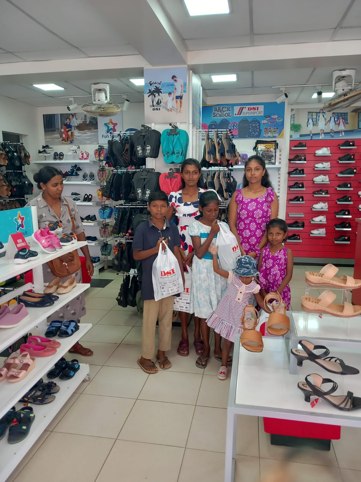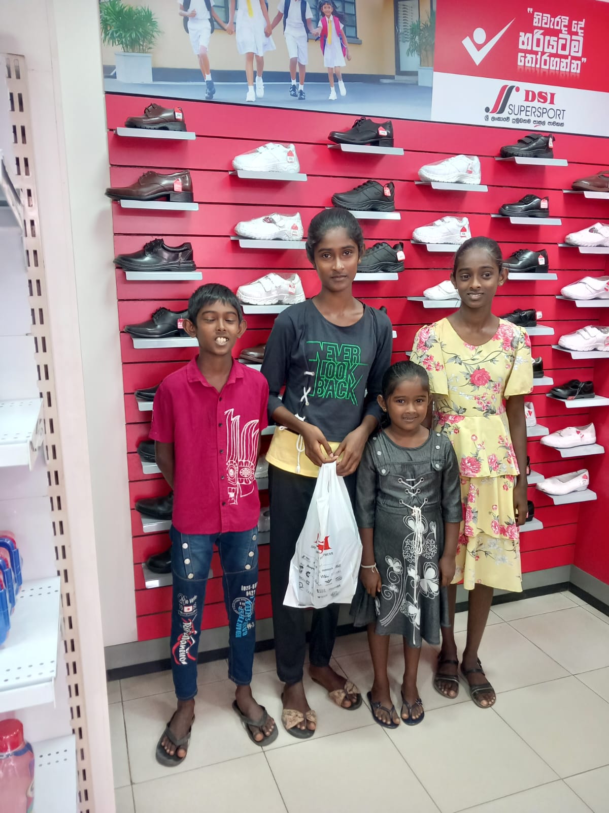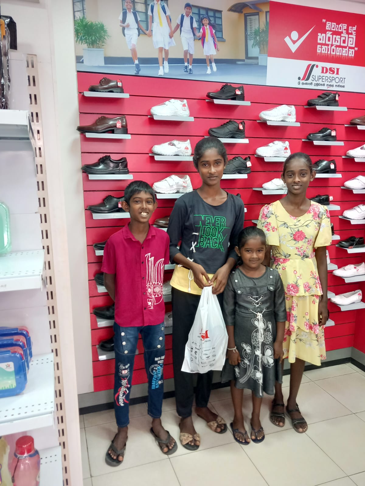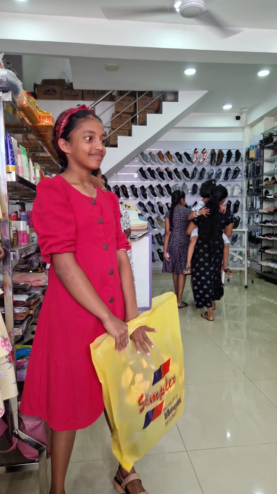 This extra discounts offered by both shops made it possible for UKFG to give New Year gifts to more children than they expected. During the ten days before the Sinhala New Year, with the help of Mr. Ananda Hewavidana and the new scholarship officer Miss Imasha, 60 children with their parents were brought to the Simplex store in small groups. When the children were told to choose any clothes they liked, they felt immense happiness. They walked from one rack to another clothes they fancied with great delight on their faces . Some of the children also bought clothes for their parents and siblings. After that the children were also lucky enough to get the shoes they fancied from Simplex store itself or nearby DSI Shoe shop .
