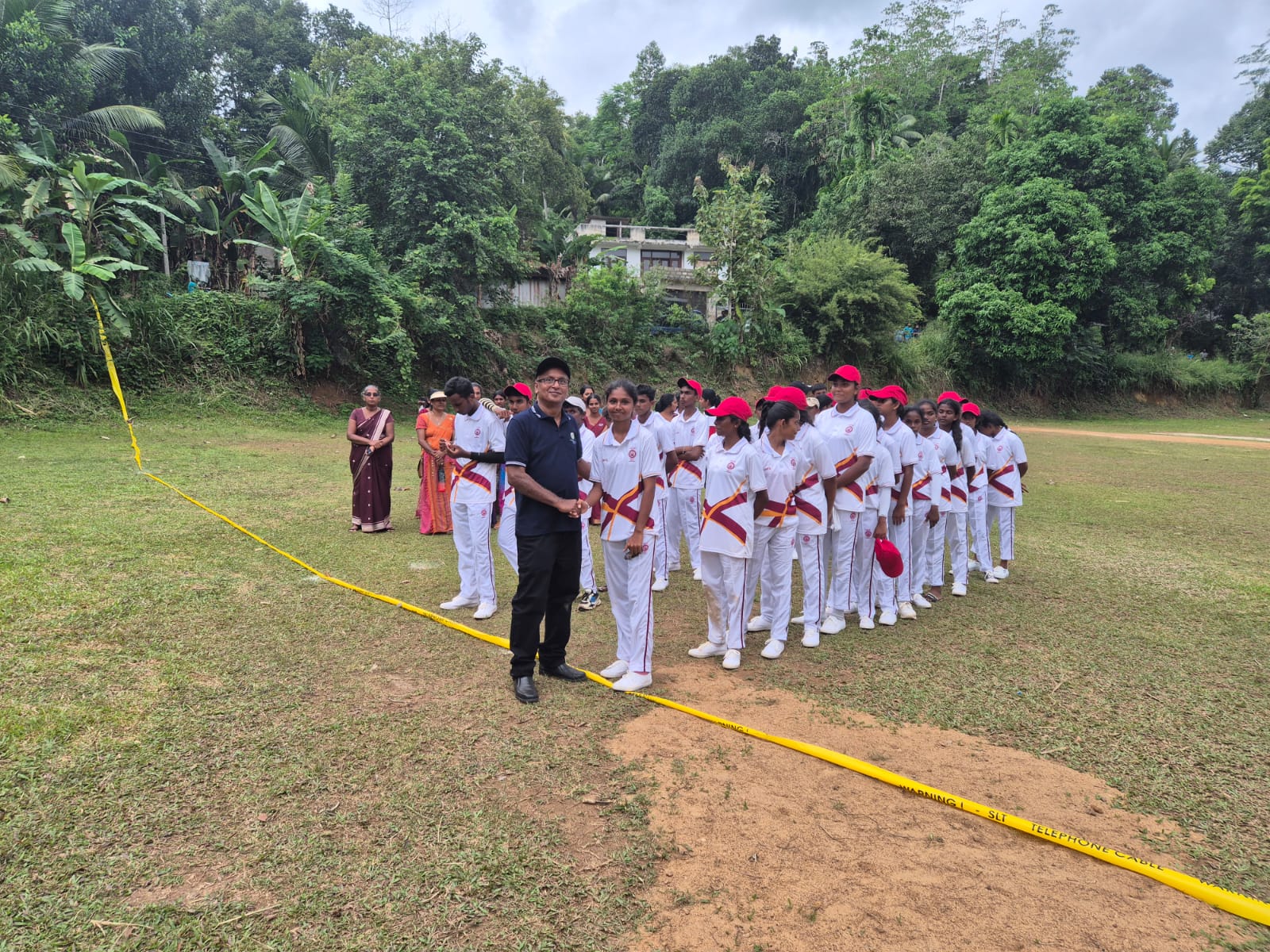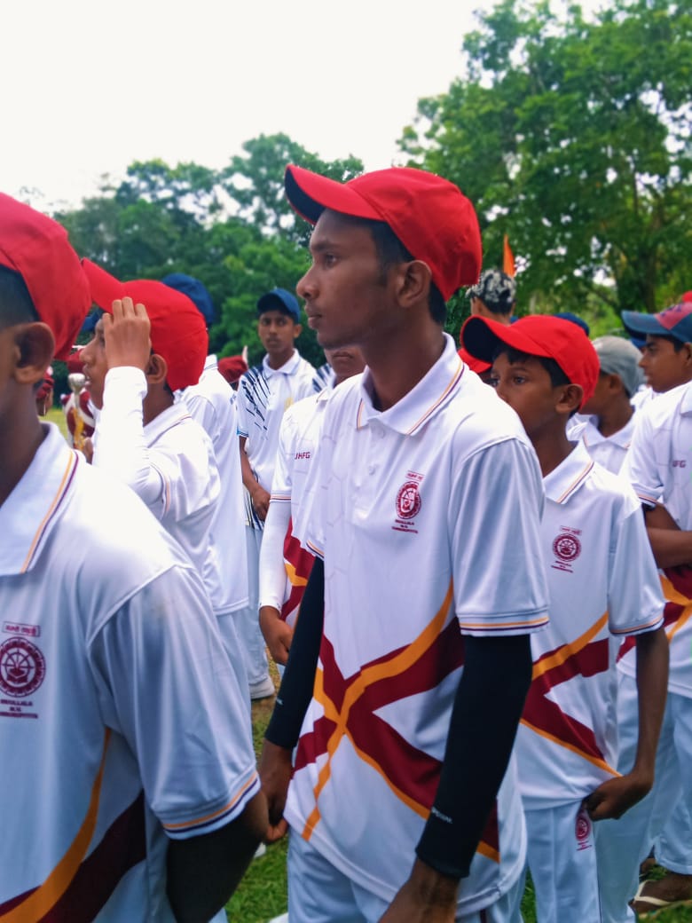UKFG provided complete cricket kits, full uniforms for 50 players, two beautiful Challenge Cups, certificates, match tents, and lunch for all participants. The day began with great ceremony — garlands, school bands, and proud processions led by students carrying the school flags. Distinguished guests including the chairman of local council Mr Morris Wasantha , an old boy of Ullalla School, Mr. Chaminda, Principal of Ullalla Maha Vidyalaya, Mr. Premawantha, retired bank manager, and school principals Mr. Nissanka Abeywickrama and Mr. Samantha Meegahawaththa as well as Mr Devsiri Hewavidana and Mr Ananda Hewavidana graced the occasion. They were warmly welcomed by students and led in a colourful parade to the school grounds by the Mapalana School band.