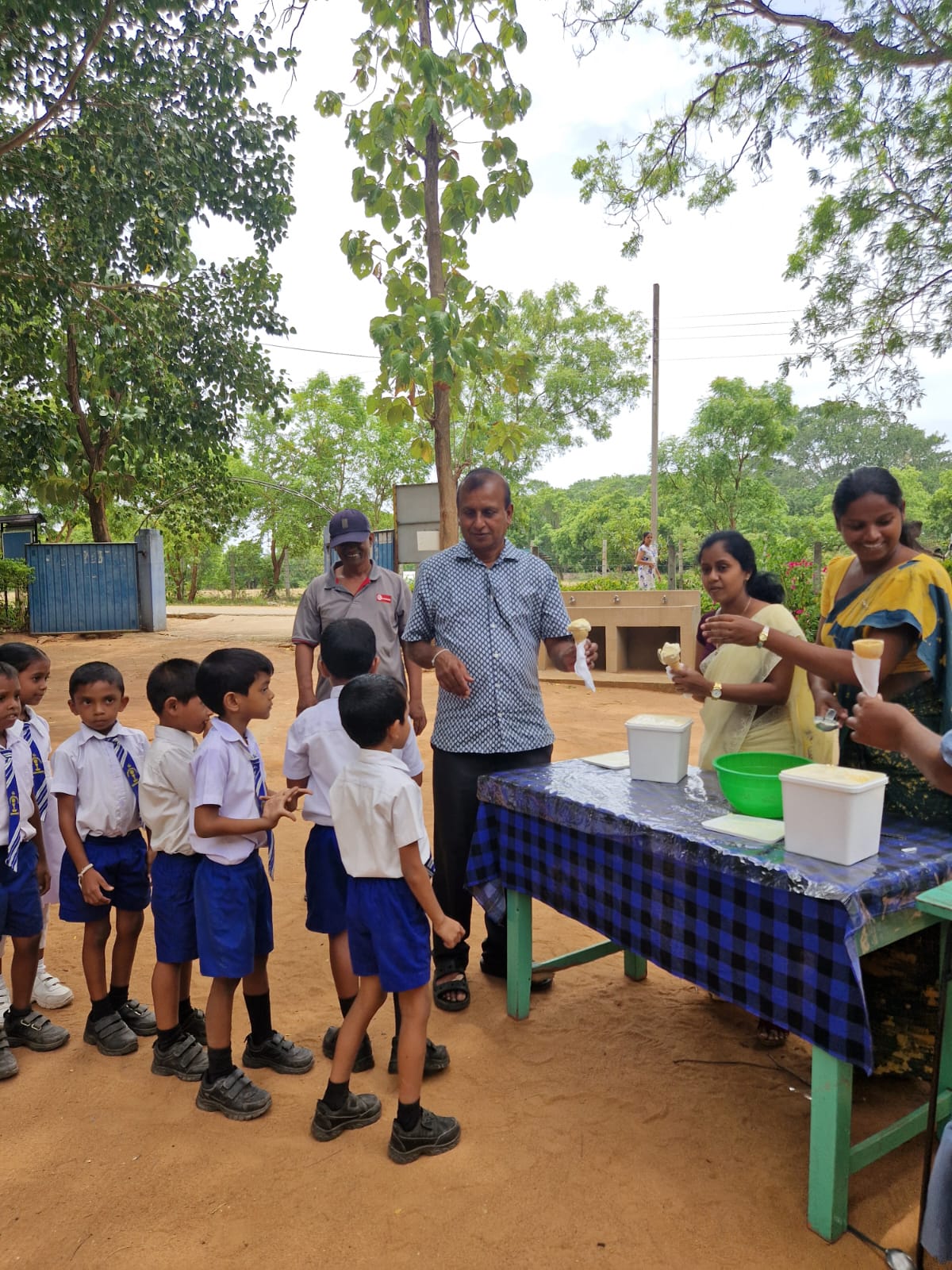ඉන් අනතුරුව පාසලේ සුන්දර ළමුන් පිරිසට අයිස්ක්රීම් වලින් සංග්රහ කිරීමට ඔවුන් අමතක කළේ නැත