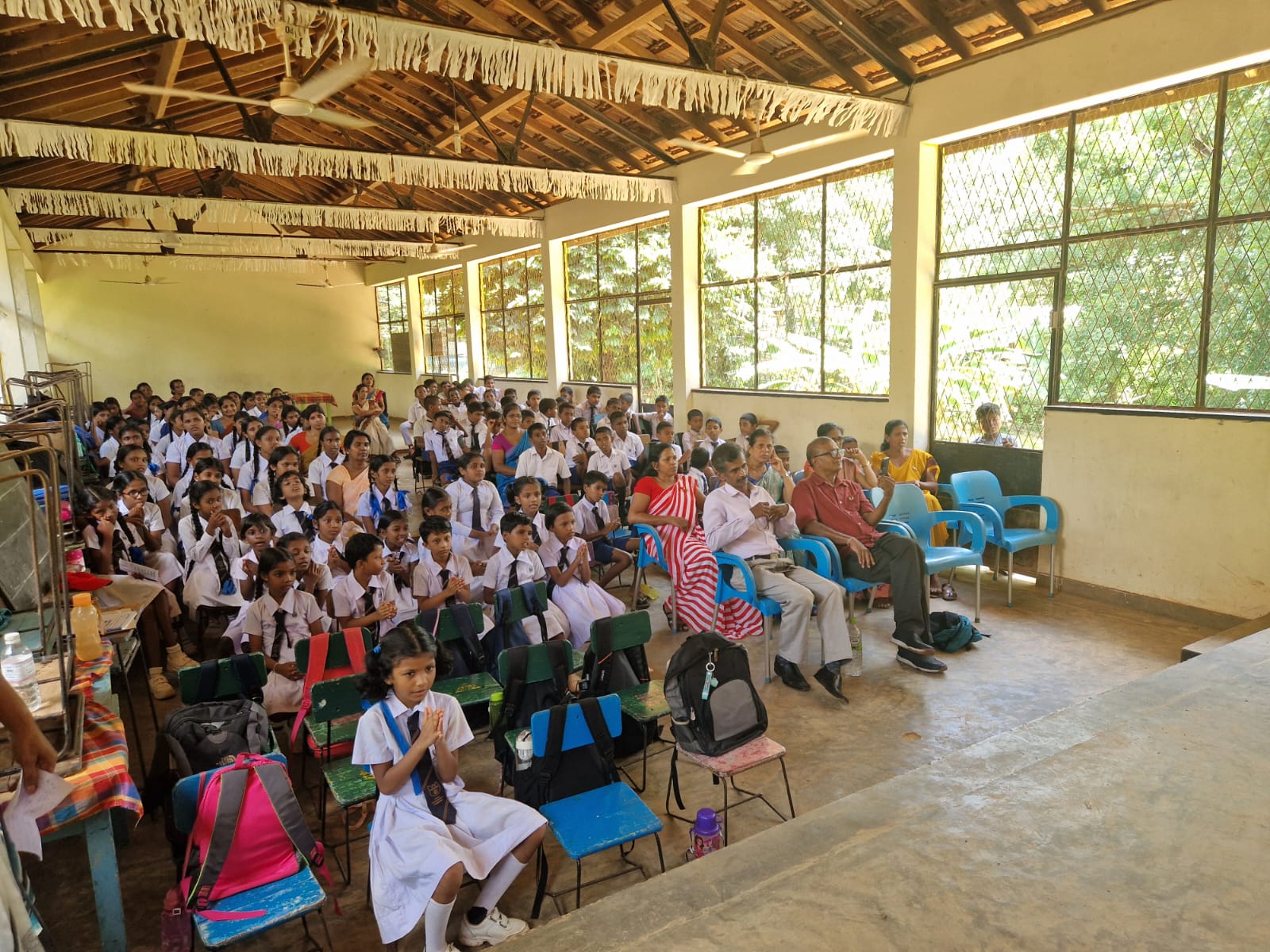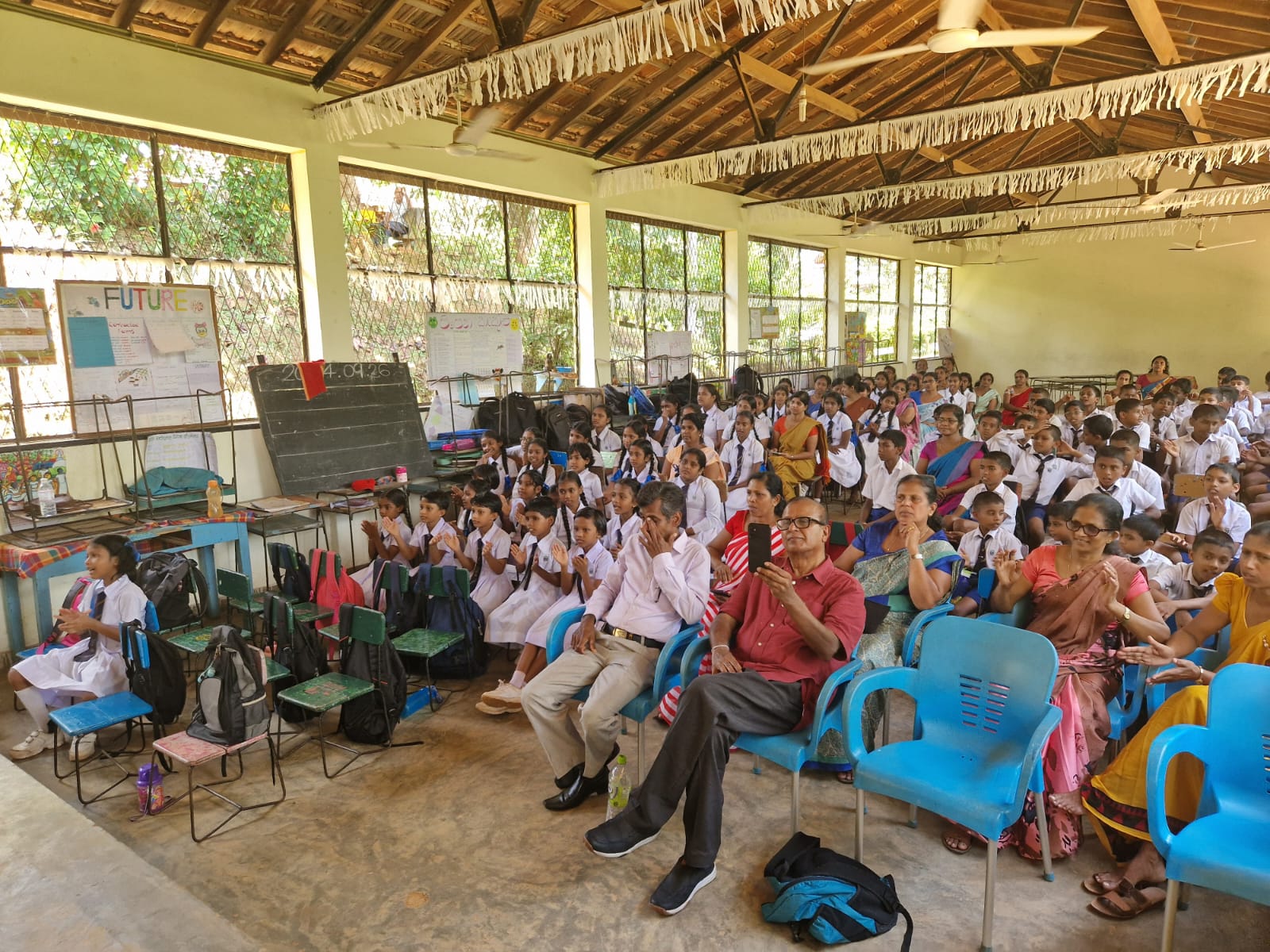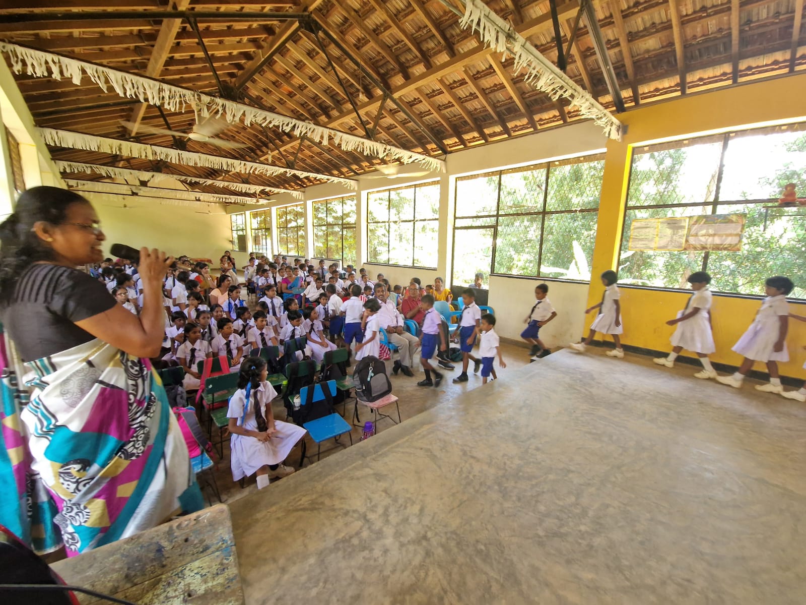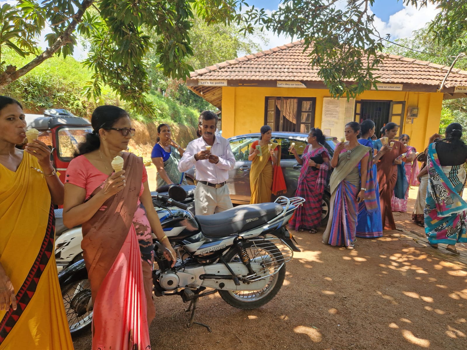 On September 10, Mr. Devsiri and Mr. Ananda Hevavidana visited Lenabatuwa Vidyalaya in heavy rain and without prior notice. Mr Suresh, the school principal and the staff immediately organized a beautiful ceremony to welcome the guests. Not only the young children of the school but also the older children entertained the guests with music, dance, poetry and beautiful songs. Mr. Devsiri, who got on stage in the middle of the ceremony, surprised everyone by donating two lakhs of rupees to the Mr. Suresh to buy special costumes for the school’s band. Excited by this unexpected gift, the students applauded him for five minutes as a way of thanking him. After that, Mr. Devsiri treated the school children and teachers with delicious ice cream.